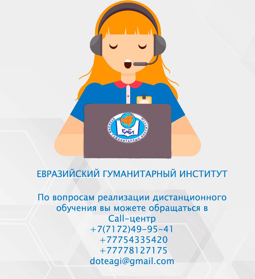 Қашықтықтан оқытудың Call-орталығыОт Модератор-1 Сайта / 27.03.2020 Еуразия гуманитарлық институтының оқытушылары мен студенттерінің назарына! Қашықтықтан оқытуды іске асыру мәселелері бойынша сіздер Call-орталыққа хабарласа аласыздар: +7 (7172) 49-95-41 +7 775 433 54 20 +7 777 812 71 75 doteagi@gmail.com Call-центр дистанционного обучения-1.jpeg