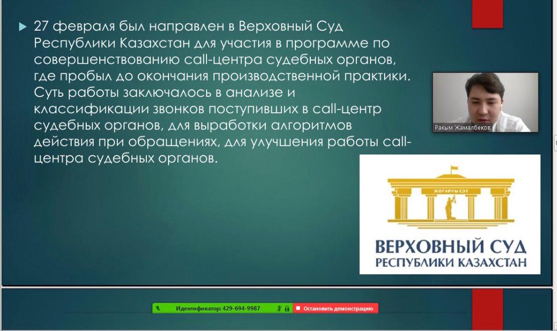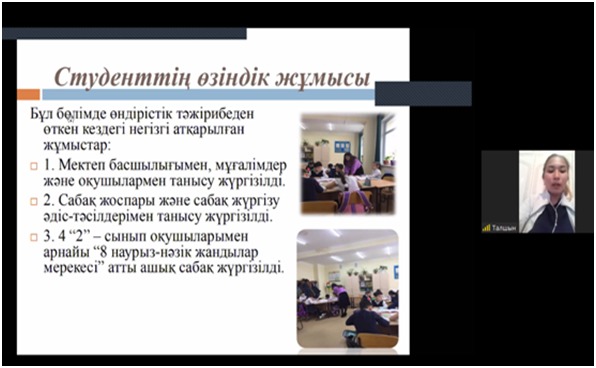 Өндірістік практиканы үлкен конференциямен аяқтау институтта жақсы дәстүрге айналған. Биыл да солай: пікір, идеялар алмасулар болды. Рас, бейнекөрсетілім мен көрнекі презентациясы бар практика есептері ерекше, заманауи форматта өтті.