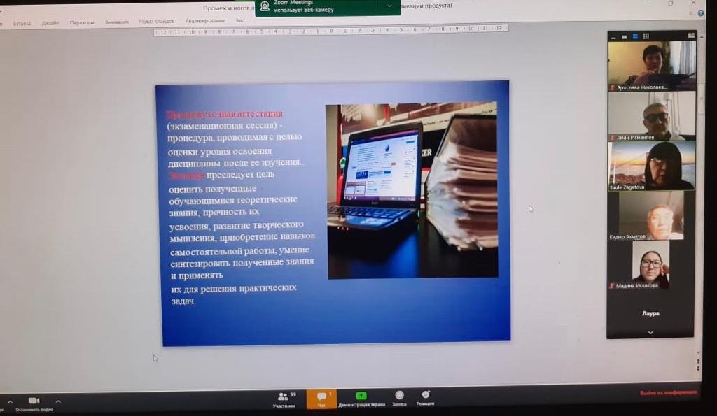 Вебинар барысында студенттермен аралық және қорытынды сессиялардың форматы талқыланды. «Аударма ісі» мамандығы бойынша бітіруші курс студенттері ағымдағы сессияны қашықтықтан тапсыру тәжірибесімен бөлісті.