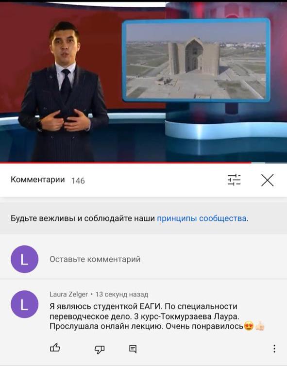Онлайн-дәріс барысында XII ғасырдағы Тұран даласының ұлы ойшылы Қожа Ахмет Ясауи әділдігінің қағидалары түсіндірілді. Түркі әлемінің дамуындағы Ясауидің рөлі сөзсіз, оның мұрасы түркі мемлекеттері арасындағы достық қарым-қатынастардың қалыптасуында үлкен рөл атқарғаны атап өтілді.