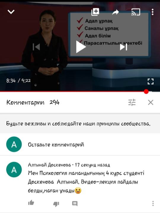 Іс-шараның мақсаты – студент жастардың бойында жалпыадамзаттық құндылықтарды қалыптастыру, адалдық, парасаттылық қағидаттарын тәрбиелеу және мәдениеттің жалпы деңгейін арттыру. Ұсынылған бейнероликте студенттер Қожа Ахмет Ясауидің рухани мұрасымен танысты, ол әділеттілік, мейірімділік, парасаттылық және ең бастысы, адалдық сияқты жалпыадамзаттық және адамгершілік құндылықтарға толы.