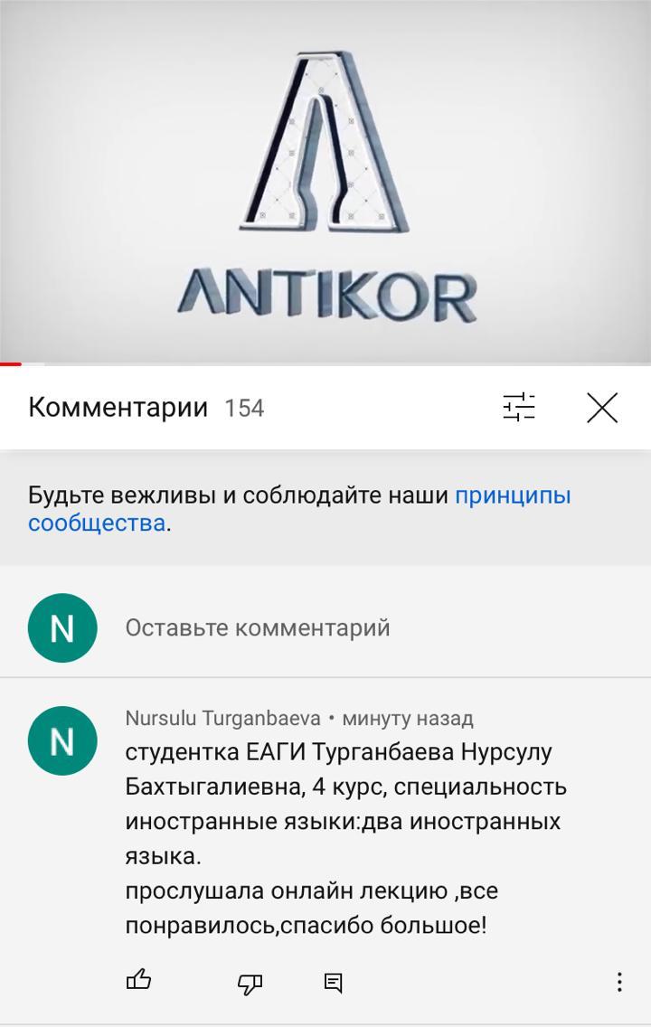2020 жылғы 1 қыркүйекте Еуразия гуманитарлық институтының студенттері Қазақстан Республикасы Сыбайлас жемқорлыққа қарсы іс- қимыл агенттігі ұйымдастырған «Әділдікке үндеген Қожа Ахмет Ясауи» тақырыбында «Адалдық сағаты» атты бірыңғай республикалық онлайн-дәріске қатысты.