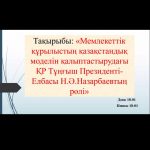 Кураторский воспитательный час на тему «Роль Первого Президента РК – Елбасы Н.А. Назарбаева в формировании казахстанской модели государственного строительства»