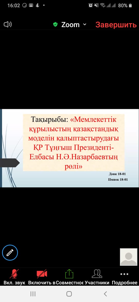 2020 жылғы 14 қарашада куратор И.А. Тобагабылова ДОВк-18-01 және ПМНОк-18-01 топ студенттерімен Тұңғыш Президент күніне арналған «Мемлекеттік құрылыстың қазақстандық моделін қалыптастырудағы ҚР Тұңғыш Президенті – Елбасы Н.Ә. Назарбаевтың рөлі» тақырыбында кураторлық тәрбие сағатын өткізді.