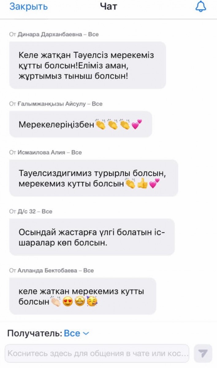 2020 жылдың 14 желтоқсанында педагогика кафедрасының «Асыл қазына» ғылыми-әдістемелік үйірмесі және кафедра филиалы №32 «Балдәурен» балабақшасының ұйымдастырумен «Тәуелсіздік таңы –мәңгілік» тақырыбында онлайн дөңгелек үстел өтті. ПМНОК -18-01 тобының студенттері іс-шараны әнұранмен бастап, Желтоқсан қаһармандарының ерлігін өлең шумақтарымен жеткізіп, тәуелсіздікке дейінгі халқымыздың жүріп өткен жолын бейнероликтен көрсетіп, азаттықтың ақ таңының қадірін айқындап берді.