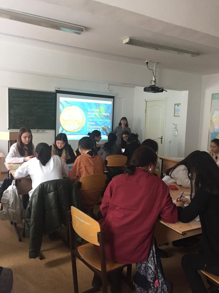 16 қарашада экономика және құқық негізі пәні бойынша Экономикалық және математикалық пәндер кафедрасының аға оқытушысы, э.ғ.м. Кожахметова А.Г. ШТ-22-01, АI-22-01 топтарында «Ақшаның адам өміріндегі маңызы» тақырыбында ашық дәріс өткізді. Дәрісте ақшаның түрлері, қызметтері, қажеттілігі тақырыбына интеллектуалды ойындар ойнатылып, түрлі тапсырмалар орындалды. Дәріс барысында студенттер белсенділік танытты.