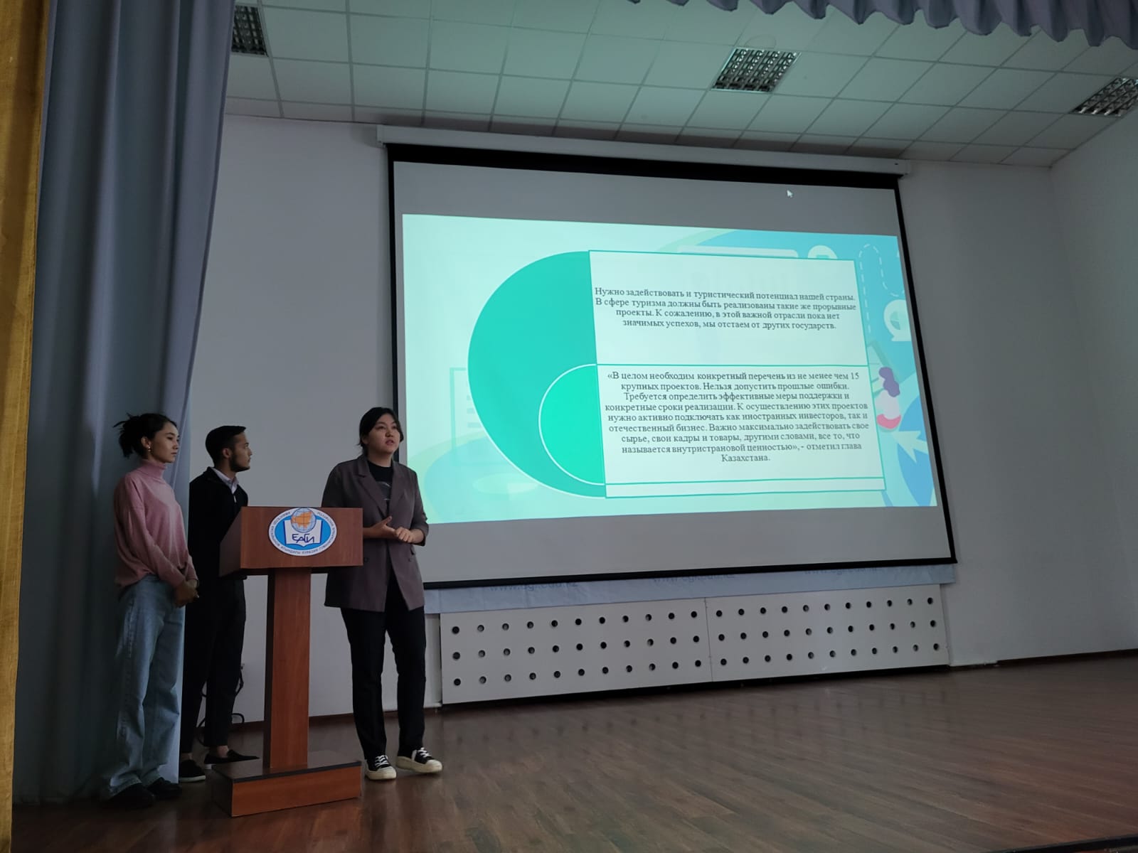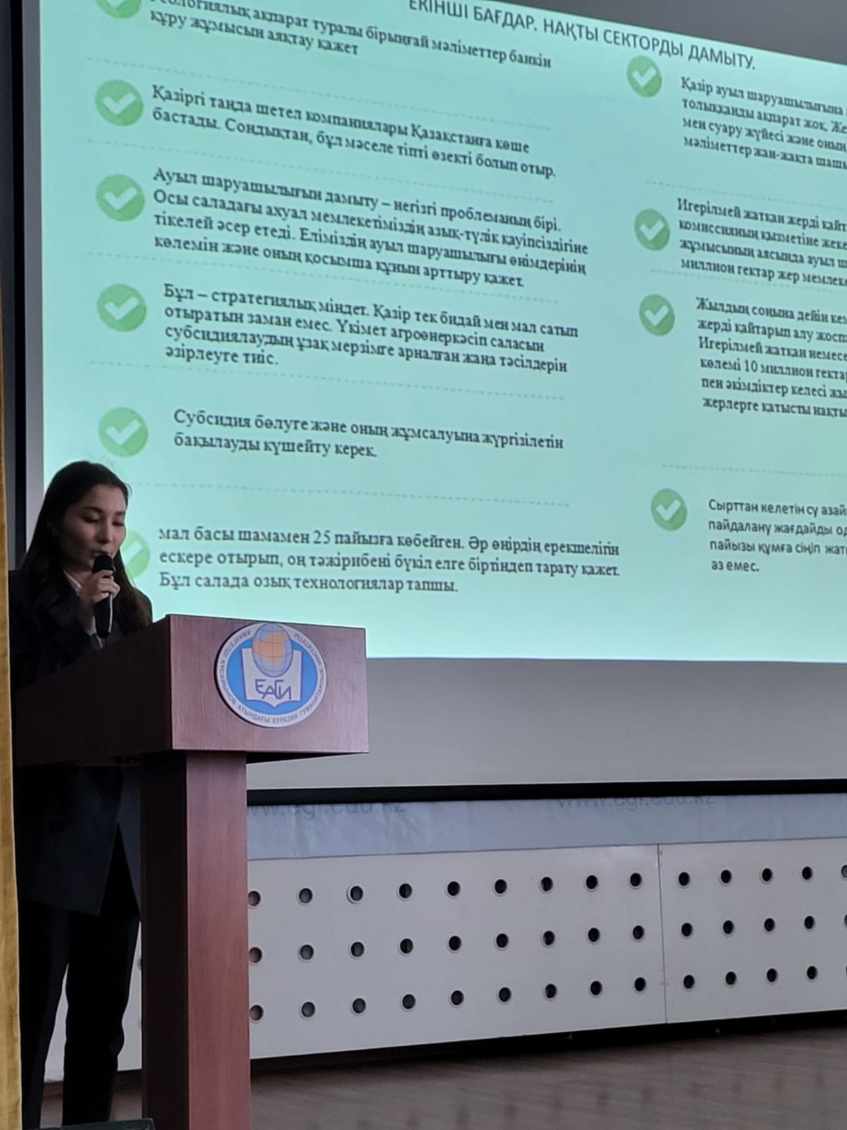Ағымдағы жылдың 15 қыркүйегінде Қазақстан Республикасының Президенті Қасым-Жомарт Кемелұлы Тоқаевтың 2023 жылғы 1 қыркүйектегі «Қазақстанның жаңа экономикалық бағыты» атты Қазақстан халқына Жолдауын талқылауға арналған жиналыс өтті. Оған экономикалық және математикалық пәндер кафедрасының және педагогика кафедрасының оқытушылары мен студенттері қатысты. Іс-шараның модераторлары: экономикалық және математикалық пәндер кафедрасының профессоры Г.Д. Тажбенова, кафедра доценті А.А. Ахметова болды. Кездесуге қатысушылар өз сөздерінде Президенттің Қазақстан халқына жолдауындағы ұстанымын қолдай отырып, әділ Қазақстандағы экономиканы дамытудың негізгі бағыттарына тоқталды.