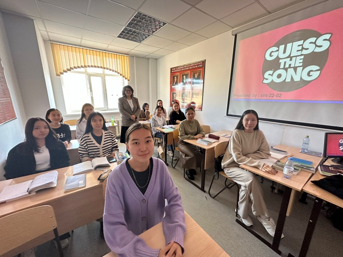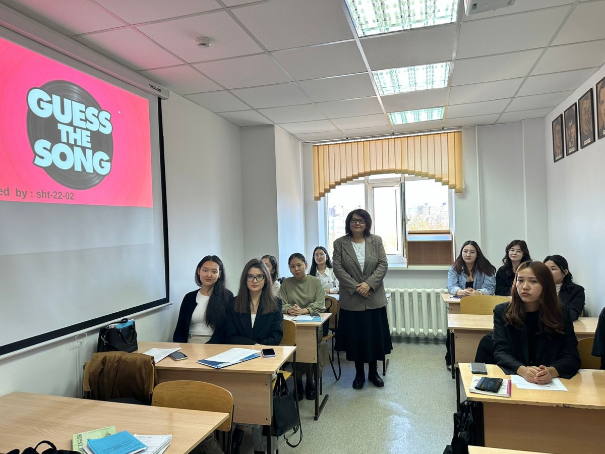 2023 жылғы 13 қазанда шетел тілдері кафедрасында аға оқытушы, п.ғ.м. А. Сарсенова ШТ-22-01, ШТ-22-02 (2 курс, «Шетел тілі: екі шетел тілі» білім беру бағдарламасы) академиялық топтарының студенттері арасында «Guess the song» ойын-сауық байқауын ұйымдастырды және өткізді. Байқау студенттердің шығармашылық әлеуетін жүзеге асыруға бағытталды.
