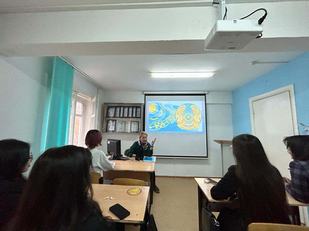 2023 жылғы 24 қазанда куратор Б.Б. Мажитова Республика күніне арналған «Қаржы» білім беру бағдарламасының 1 курс студенттеріне кураторлық сағат өткізді. Студенттер А. Тимофеева және М. Айтенов ұлттық мерекенің пайда болу тарихы туралы баяндама жасады.