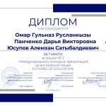 1-орын – Омар Гульназ Русланкызы, Панченко Дарья Викторовна, Юсупов Алемхан Сатыбалдиевич, А.Қ. Құсайынов атындағы Еуразия гуманитарлық институты, Астана қ. (ИЯ-23-01 академиялық тобы, 2-курс, «Шетел тілі: екі шетел тілі» білім беру бағдарламасы)