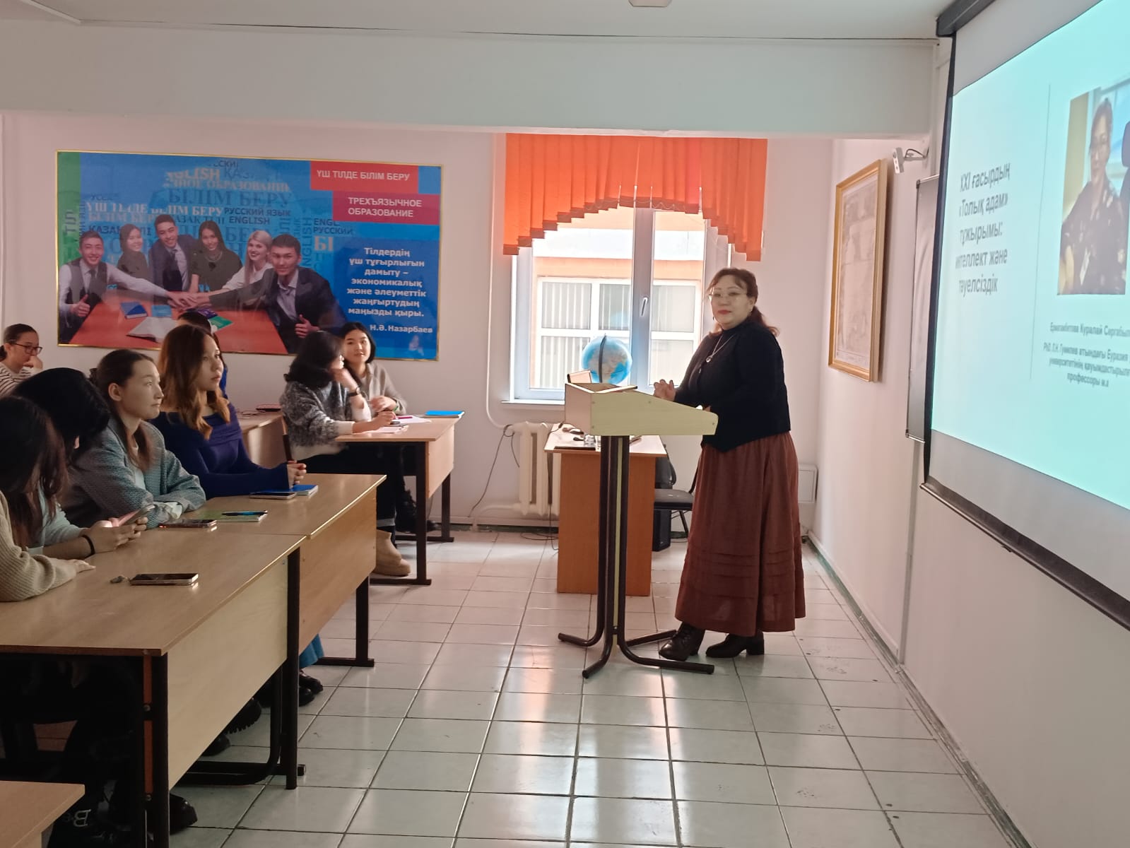 2024 жылғы 5 желтоқсанда тарих апталығы аясында «Тәуелсіздік және Алаш» тақырыбында Л.Н. Гумилев атындағы Еуразия ұлттық университетінің оқытушысы, философия ғылымдарының докторы, доцент К.С. Ермагамбетова 1-3 курс студенттеріне (МД-24-01, БО-24-01, ШТ-23-01, Т-22-01 академиялық топтары) «ХХІ ғасырдың «Толық адам» тұжырымы: интеллект және тәуелсіздік» тақырыбы бойынша қонақ дәрісін оқыды. Дәріс соңында студенттер лекторға өздерін толғандыратын сұрақтар қойып, одан сұхбат алды.