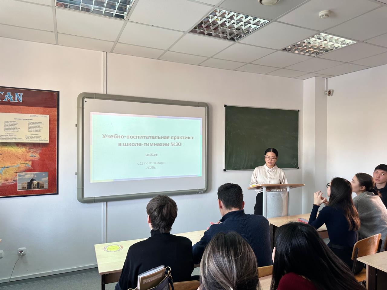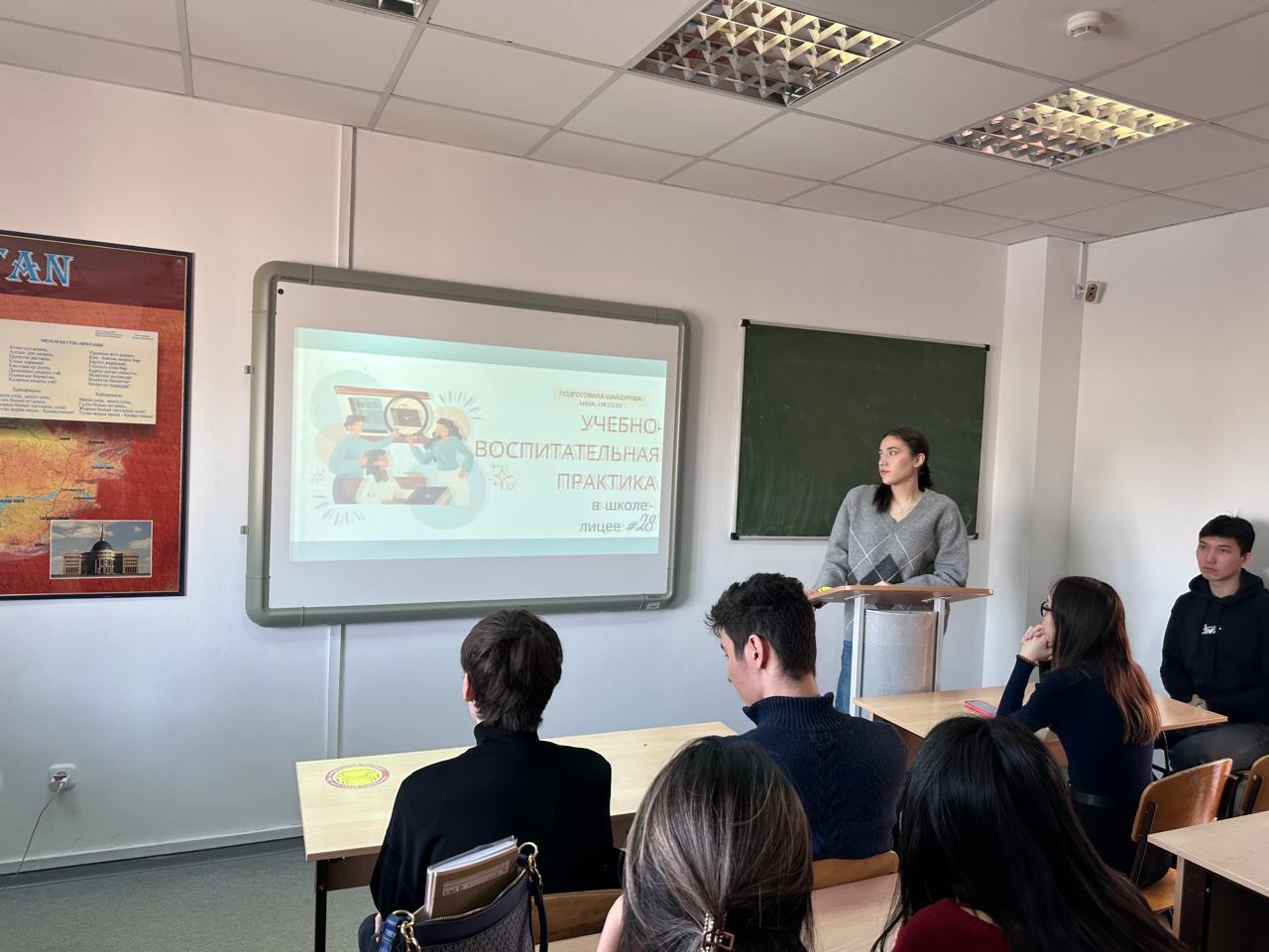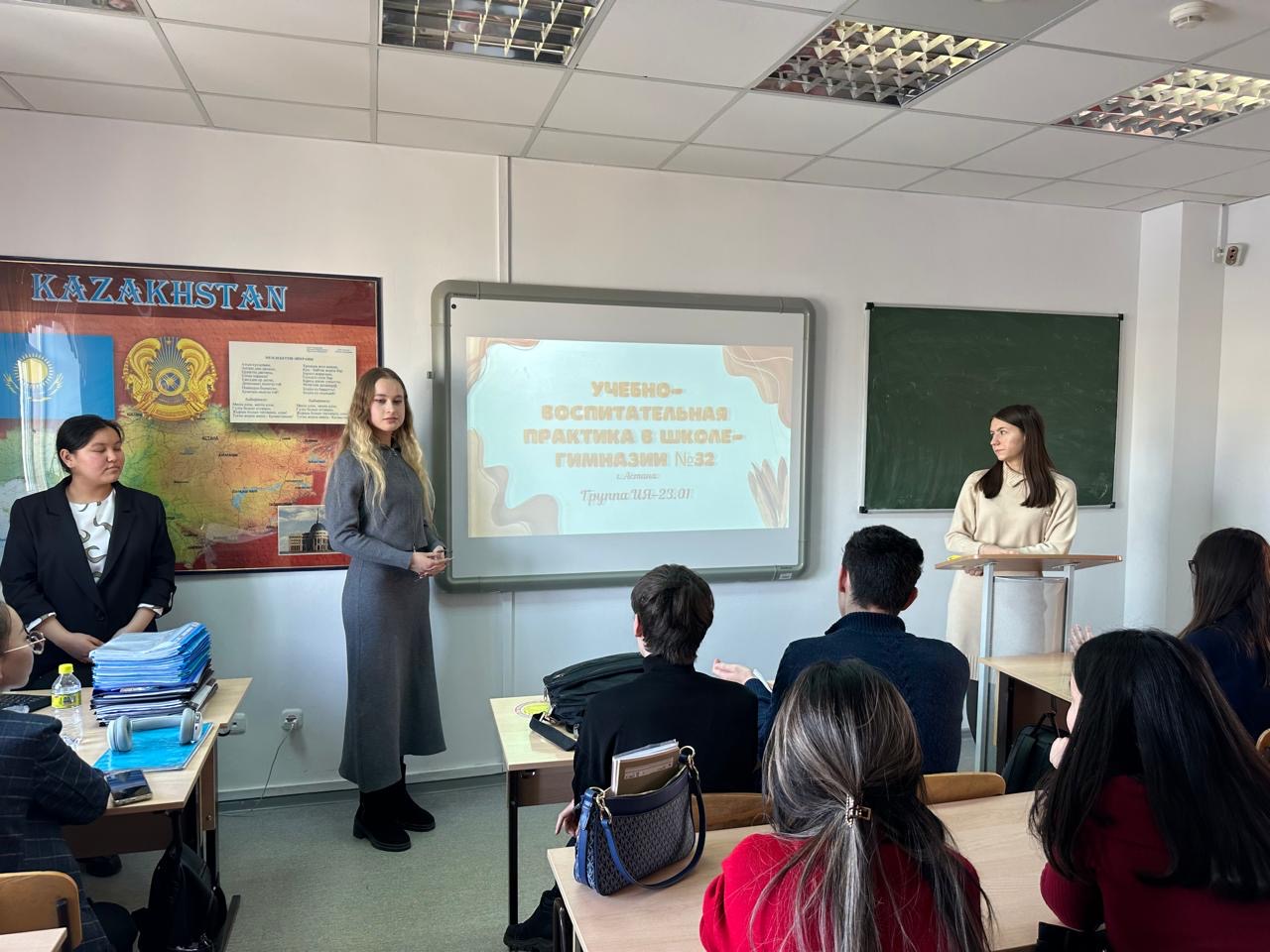 2025 жылғы 13 ақпанда шетел тілдері және аударма ісі кафедрасында «Шетел тілі: екі шетел тілі» білім беру бағдарламасының 2-курс студенттерінің оқу-тәрбие практикасының қорытындыларына арналған конференция өтті (ИЯ-23-01 академиялық тобы). Конференцияны практика жетекшілері, кафедраның аға оқытушылары А.А. Султанова және А.М. Сарсенова ұйымдастырды.