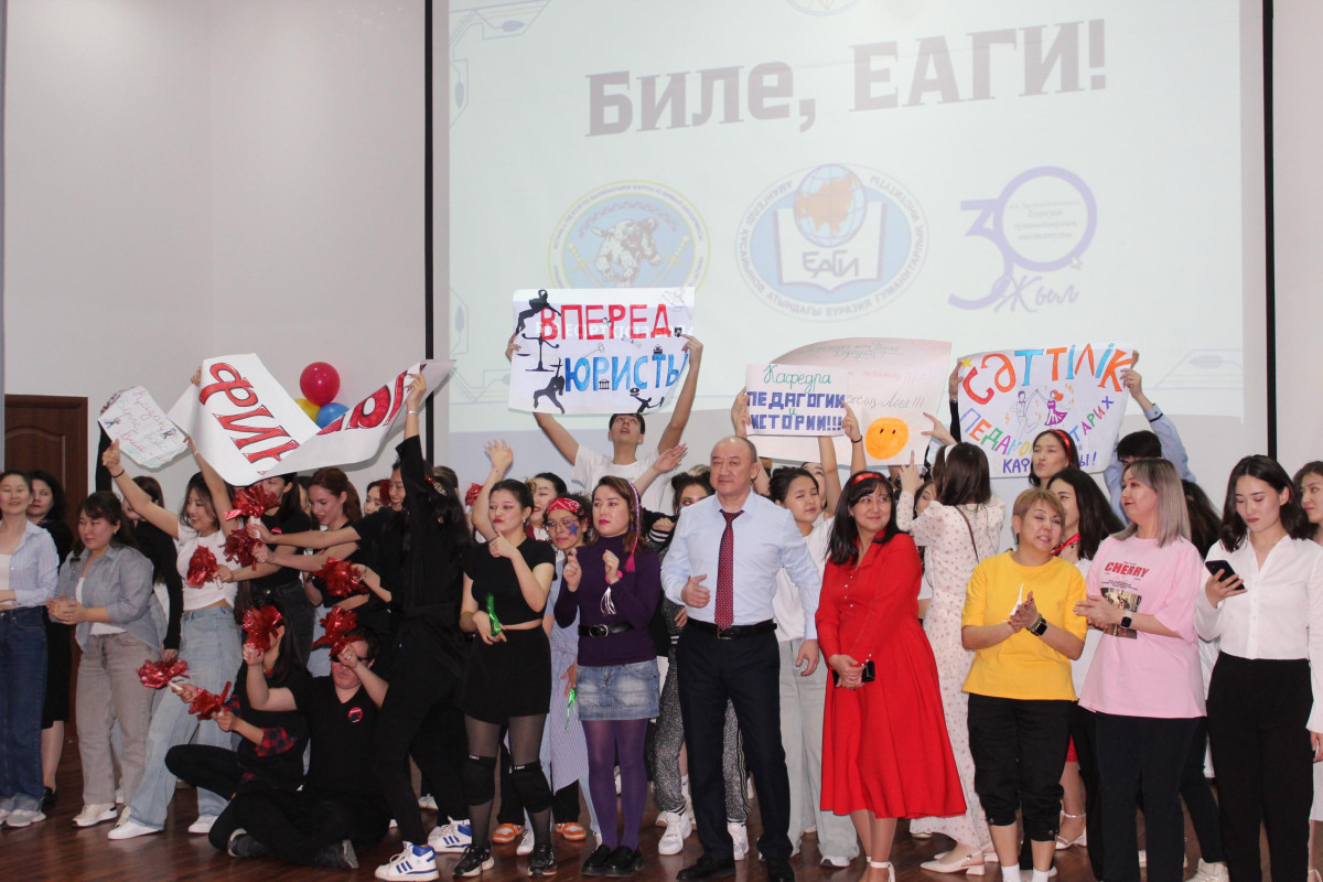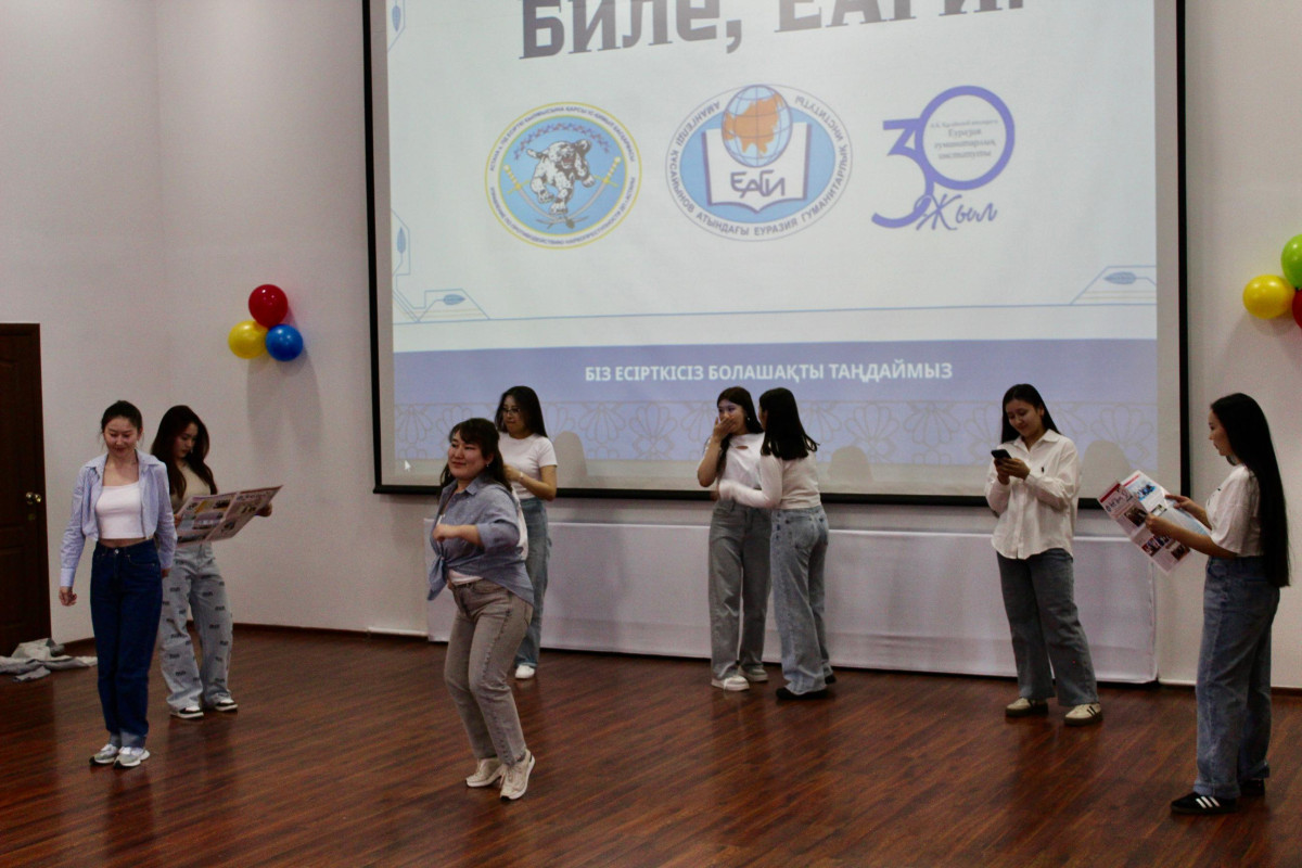 2025 жылғы 28 ақпанда А.Қ. Құсайынов атындағы Еуразия гуманитарлық институтында Астана қаласы Полиция департаментінің есірткі қылмысына қарсы іс-қимыл басқармасының қолдауымен біздің институттың 30 жылдығына арналған оқытушылар, қызметкерлер мен студенттер арасында «Биле, ЕАГИ!» дәстүрлі байқауының X маусымы өтті. Байқауға алғаш рет ректорат, деканат, кітапхана және студенттік өзін-өзі басқару көшбасшыларының құрама командасы қатысты. Жоба қатысушылары әртүрлі номинациялар бойынша өз шеберліктерін көрсетті. Құзыретті қазылар алқасы байқаудың жеңімпаздары мен жүлдегерлерін анықтады.