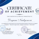 А.Қ. Құсайынов атындағы Еуразия гуманитарлық институтын осы конференцияда «Шетел тілі: екі шетел тілі» білім беру бағдарламасының 3-курс студенттері Найденова Даяна (ИЯ-22-01 академиялық тобы) және Нурлатқызы Балнур (ШТ-22-01 академиялық тобы) таныстырды. Студенттердің ғылыми жетекшісі: ЕАГИ шетел тілдері және аударма ісі кафедрасының аға оқытушысы А.М. Сарсенова.