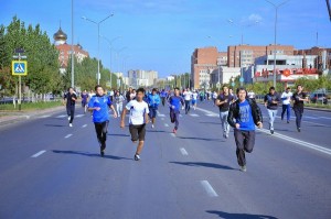 Участники акции, которых, по общей оценке, в этом году оказалось около пяти тысяч человек, начали свой забег на пересечении улиц М.Жумабаева и К.Мунайтпасова. Конечной точкой забега стал парк «Жерұйық», где был разбит городок здоровья с участием медицинских организаций города, занимающихся пропагандой здорового образа жизни. Квалифицированные специалисты проводили осмотр и экспресс-анализы любым желающим. Также были организованы показательные выступления спортивных коллективов – каратэ, Тай-чи, цигун и др. Помимо спортивных состязаний, был организован концерт с участием звезд казахстанской эстрады, который с удовольствием посетили наши студенты и преподаватели.