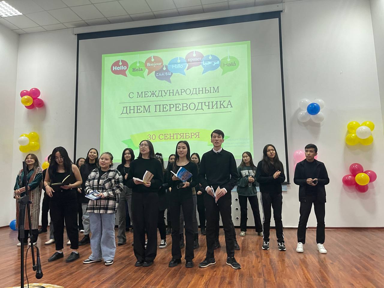 В институте по инициативе кафедры иностранных языков состоялся концерт, приуроченный к праздничной дате. В преддверии праздника студенты 1 – 4 курсов специальности «Переводческое дело» приняли участие в конкурсах на лучшую стенгазету и лучший перевод отрывка художественного произведения иностранного автора на казахский и русский языки. Участники концерта показали вокальные номера, театральные постановки на английском, французском и немецком языках. На сцене были исполнены зажигательные танцы стран изучаемых языков. В заключение  жюри объявило лучших в номинациях, победителям были вручены дипломы и благодарственные письма.