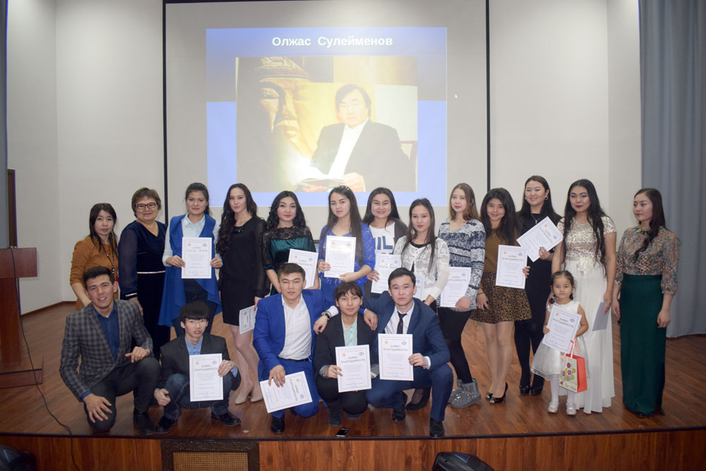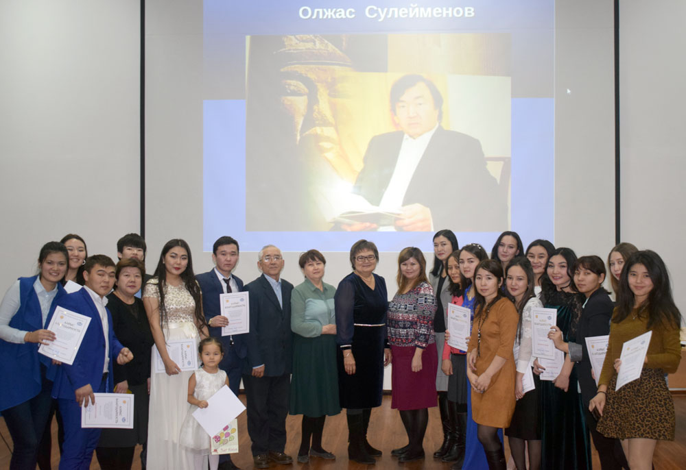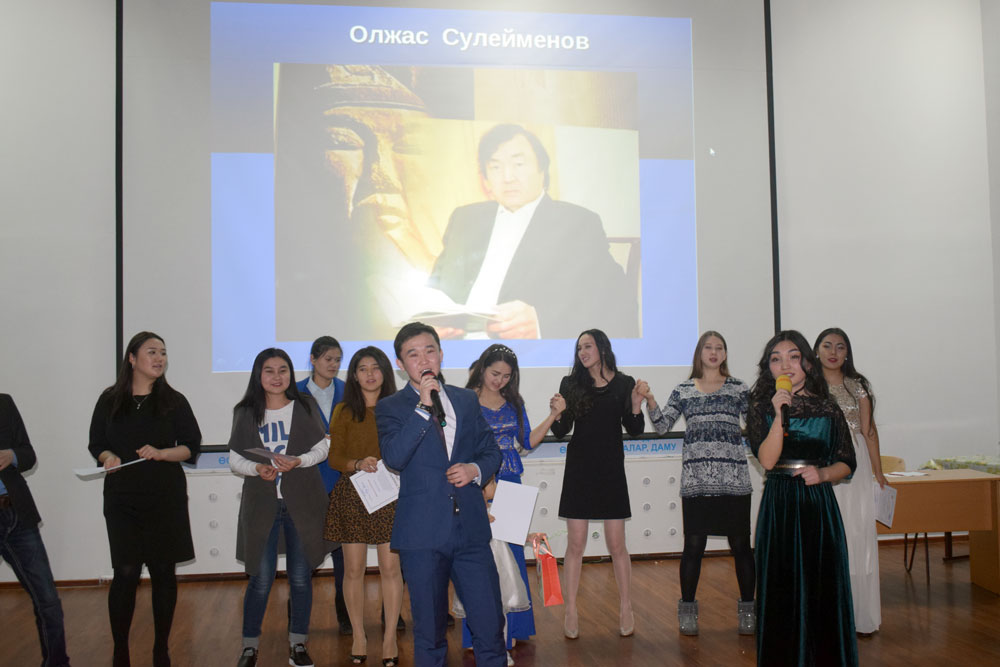29 ноября 2016 года студенты II курса специальности «Казахский язык и литература» под руководством к.п.н., доцента Казиной Р.А. провели зачетное мероприятие в форме литературно-музыкальной композиции «Мы за мир!», посвятив его 80-летию уникального человека и многогранной личности, народного писателя и поэта, литературоведа, общественного и политического деятеля, дипломата Олжаса Омаровича Сулейменова, а также 25-тилетию Независимости Республики Казахстан.