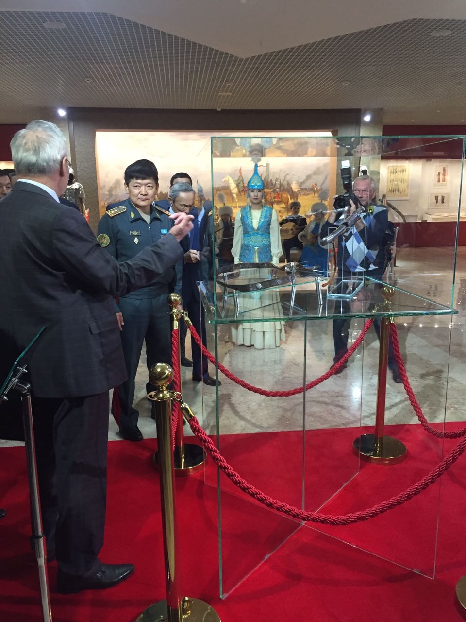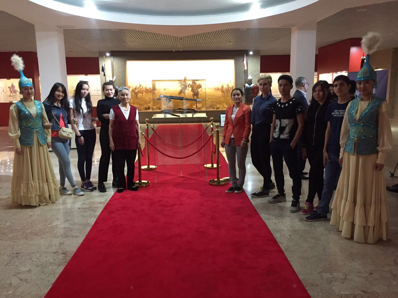 В военно-историческом музее национального военно-патриотического центра вооруженных сил Казахстана состоялось открытие экспозиции, посвященной реликвиям Канжыгалы Богенбай батыра. «Богенбай батыр был главнокомандующим армии трех казахских жузов и не потерпел ни одного поражения в своей военной карьере. Секира – одно из пяти оружий батыра против калмыков, которая прославила его подвигами», – говорится в сообщении Центра. Секира и кожаный пояс великого полководца были переданы в Музей 28 апреля 2017 года при поддержке главы партии «Ақ жол» Перуашева Азата Турлыбековича и заместителя председателя Барлыбай Ерлана Хайлановича. Увидели это воочию и познакомились с историй подвигов легендарной личности студенты, сотрудники и преподаватели Евразийского гуманитарного института. Также на открытии экспозиции присутствовал руководящий состав Министерства обороны Республики Казахстан, деятели науки и искусства и представители общественности страны.