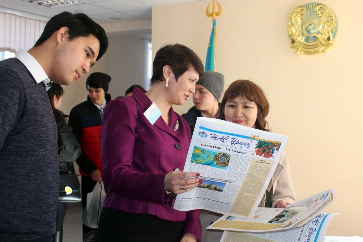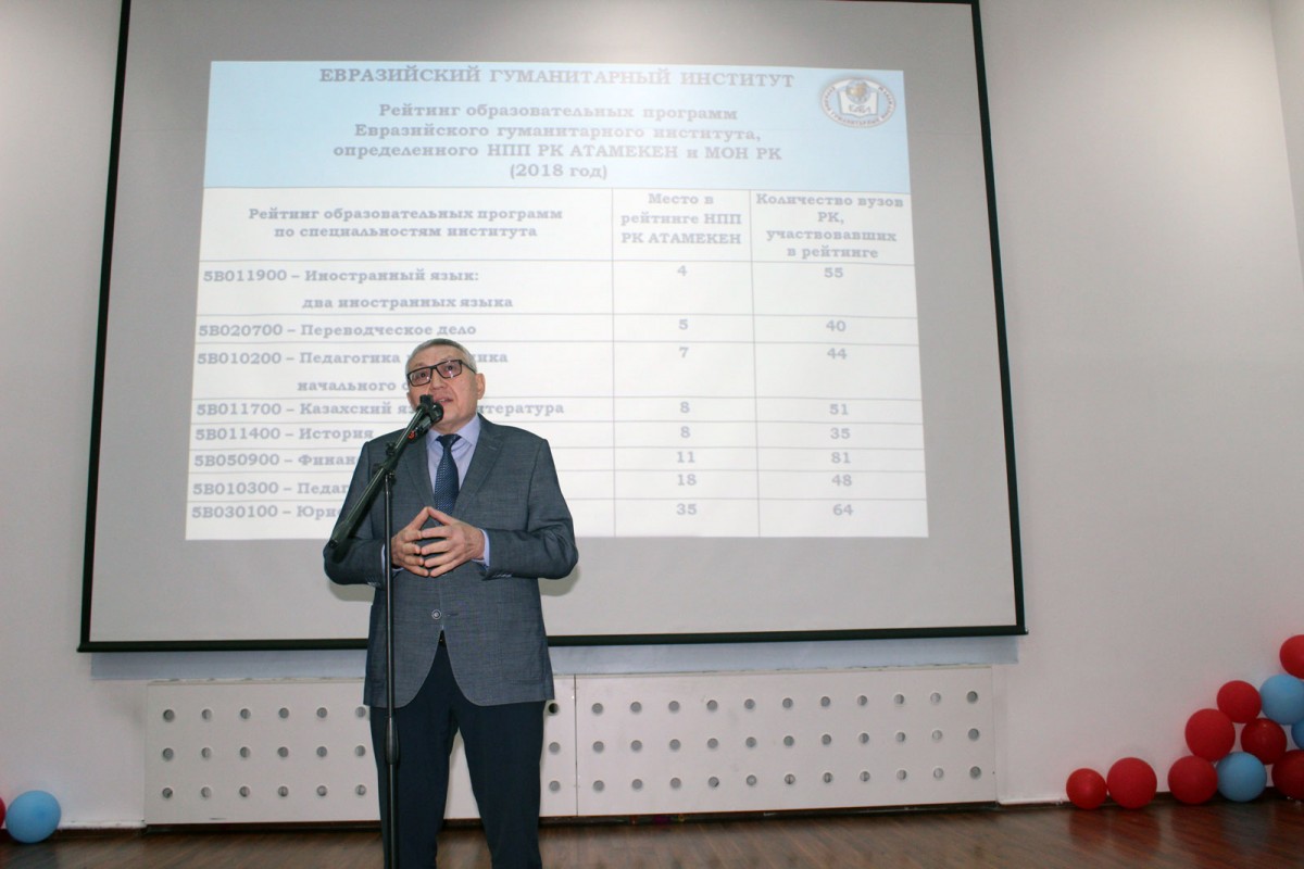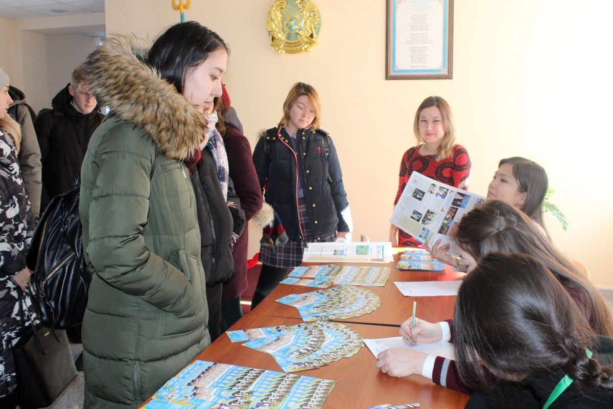 Перед гостями выступили первый проректор ЕАГИ, профессор Исмаилов А.Д., проректор по учебной и научной работе, профессор Ахметов К.А., декан, доцент Мамаділ К.А., проректор по воспитательной работе, профессор Оспанова Я.Н., председатель КДМ Тырнахан Н., активисты студенческого самоуправления, которые обратили внимание на важность выбора будущего вуза и профессии, поделились информацией о внеучебной деятельности в институте и представили презентацию студенческой жизни ЕАГИ.