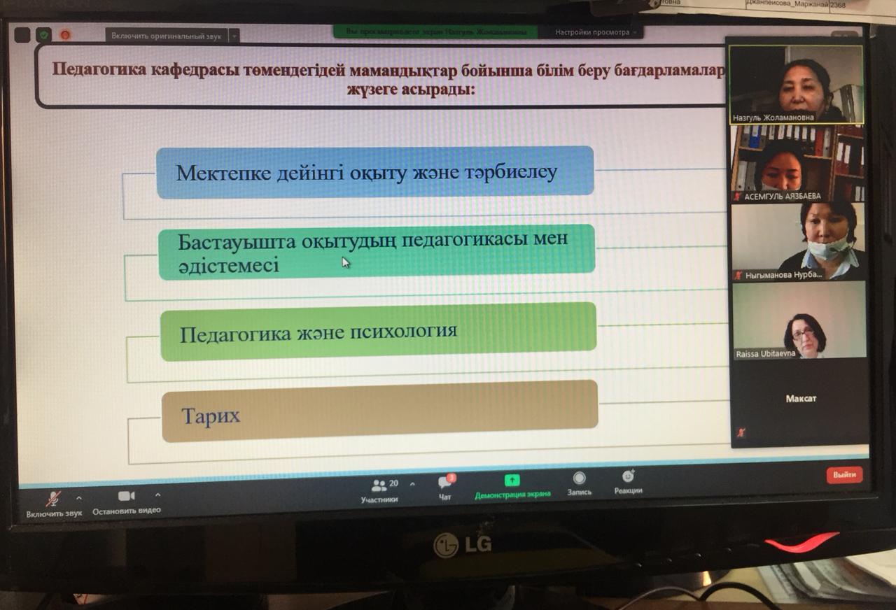 Профориентационный онлайн-семинар открыла заведующая кафедрой педагогики, профессор Н.Т. Ныгыманова.