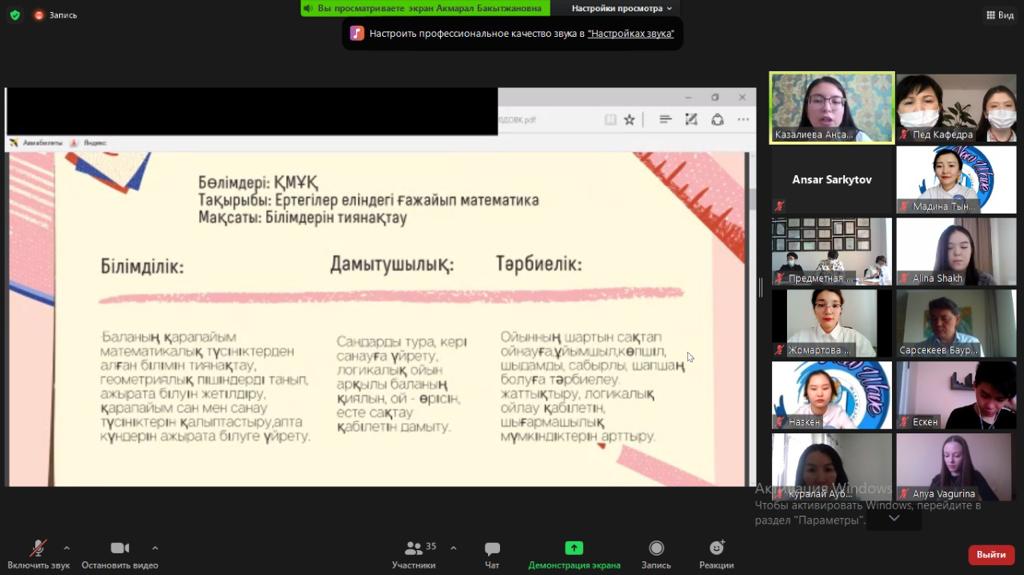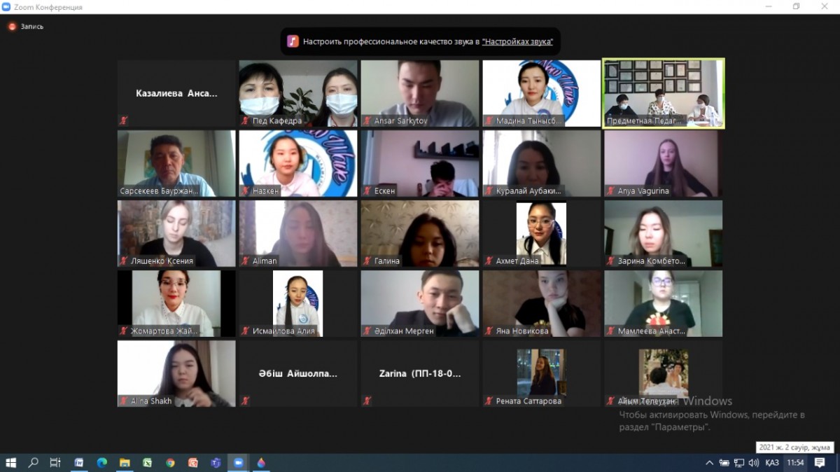 Участниками конкурса стали команды «Жаңа толқын» (ПМНОк 18-01, капитан команды Тынысбек Мәдина), «Зерек бала» (ДОВк 18-01, капитан команды Карсыбек Алтынай), «Туран» (И-18-01, капитан команды Мерген Әділхан), «Синергия» (ПМНО 18-01, капитан команды Новикова Яна), «Алые паруса» (ПП 18-01, капитан команды Жетписова Зарина), «Изивин» (ИЯ 18-01, капитан команды Саркытов Ансар).