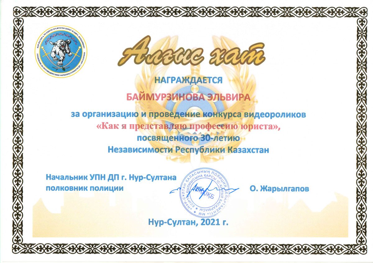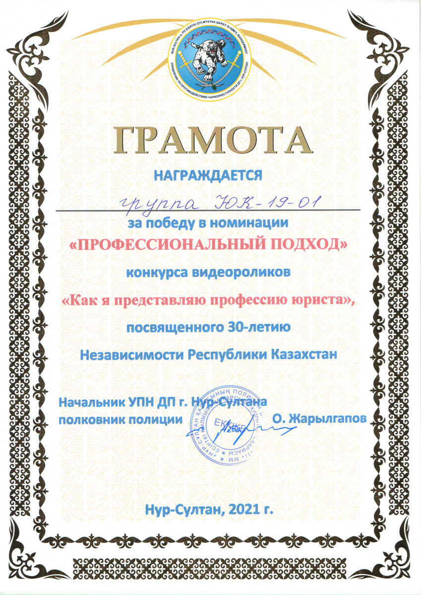 «Лучший творческий подход» – Имашев Мейрам, студент группы ЮР-19-01.
