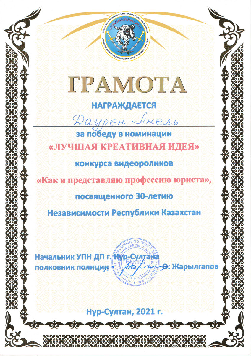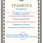 «Лучшая креативная идея» – Даурен Анель, студентка группы ЮР-19-01.