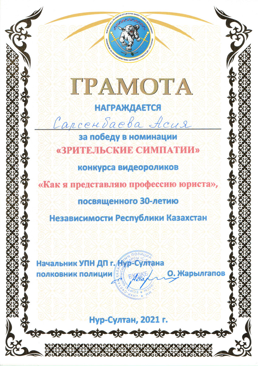 Приз зрительских симпатий присуждался по результатам зрительского голосования, независимо от оценок жюри. В данной номинации победила студентка группы ЮР-19-01 Сарсенбаева Асия.