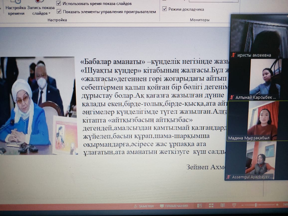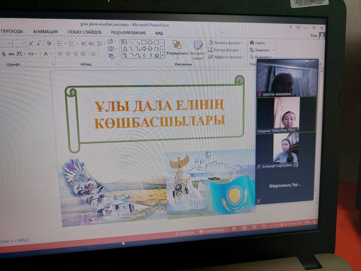К 30-летию Независимости Республики Казахстан и с целью реализации программы «Рухани жаңғыру» студенты академических групп ДОВК-18-01 и ПМНОК-18-01 совместно с куратором Тобагабыловой И.А. провели кураторский час «Бабалар аманаты. Ұлы дала елінің көшбасшылары».