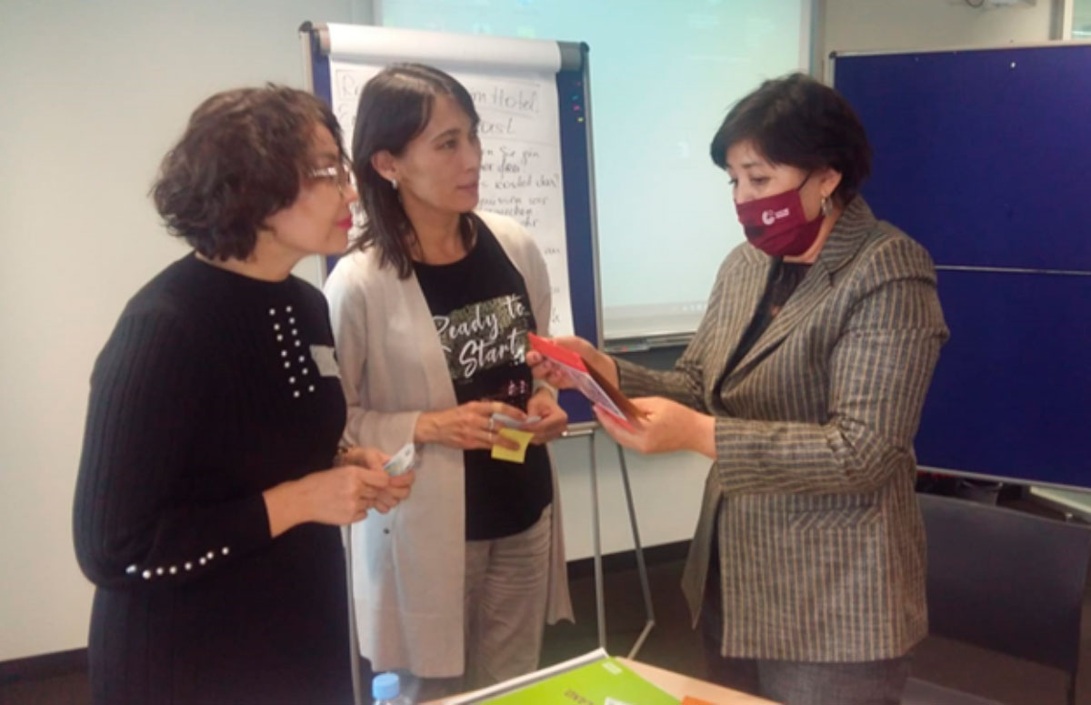Сертифицированные мультипликаторы-тренеры Ирина Гилинская и Жанар Карашашева познакомили участников семинара с современными методическими приемами и методиками по обучению грамматике на уроках немецкого языка, представив широкий спектр различных упражнений, которые можно проводить как в режиме офлайн, так и в режиме онлайн.