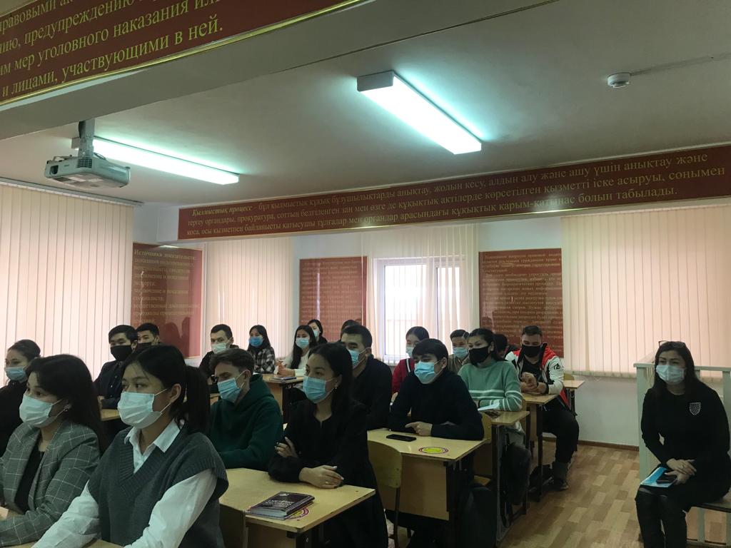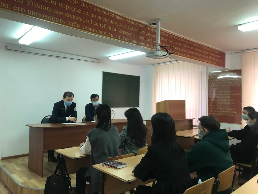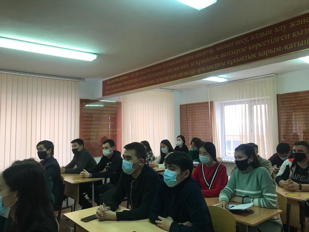 26 ноября 2021 года в рамках плана проведения гостевых лекций для студентов образовательной программы «Юриспруденция» (академические группы ЮР-18-01, ЮР-18-02, ЮРТ-19-01, ЮК-18-021, ЮК-18-02) кафедрой юридических дисциплин, Студенческим Парламентом совместно с Департаментом юстиции города Нур-Султана была организована гостевая лекция на тему: «Конфискация имущества по судебным актам». Лекцию прочитал старший судебный исполнитель Департамента юстиции г.Нур-Султана Лесбеков А. Е.