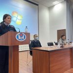С приветственным словом выступила проректор по воспитательной работе Я.Н. Оспанова. Ярослава Николаевна в своем выступлении поделилась опытом работы Евразийского гуманитарного института по профилактике правонарушений в студенческой среде, профилактике религиозного экстремизма и терроризма, в том числе с участием лидеров студенческого самоуправления.