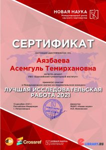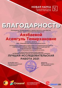 Научная работа, опубликована в МЦНП «Новая наука», размещена в научной электронной библиотеке eLIBRARY ID:47418856 ссылка https://elibrary.ru/item.asp?id=47418856