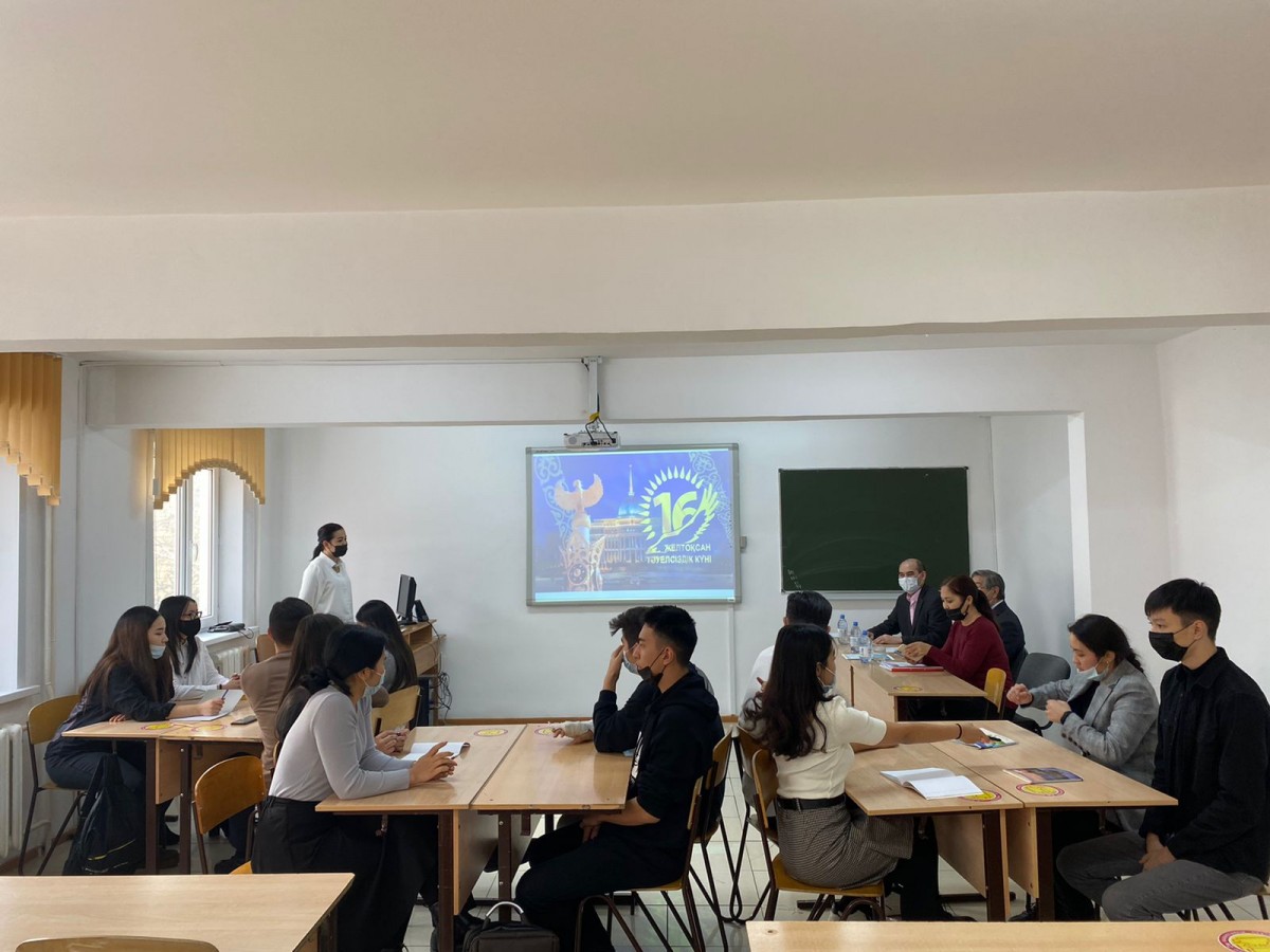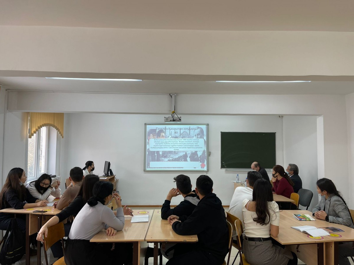 Организатор интеллектуальной игры, старший преподаватель кафедры, м.ю.н. Тортаева А.Э. обеспечила проведение игры содержательно и интересно. В игре приняли участие команды «Тәуелсіздік тарландары» (группа ЮК-20-01), «Фемида» (группа ЮК-21-01), «Азат» (группа ЮК-21-02), которые подробно ответили на вопросы всех этапов.