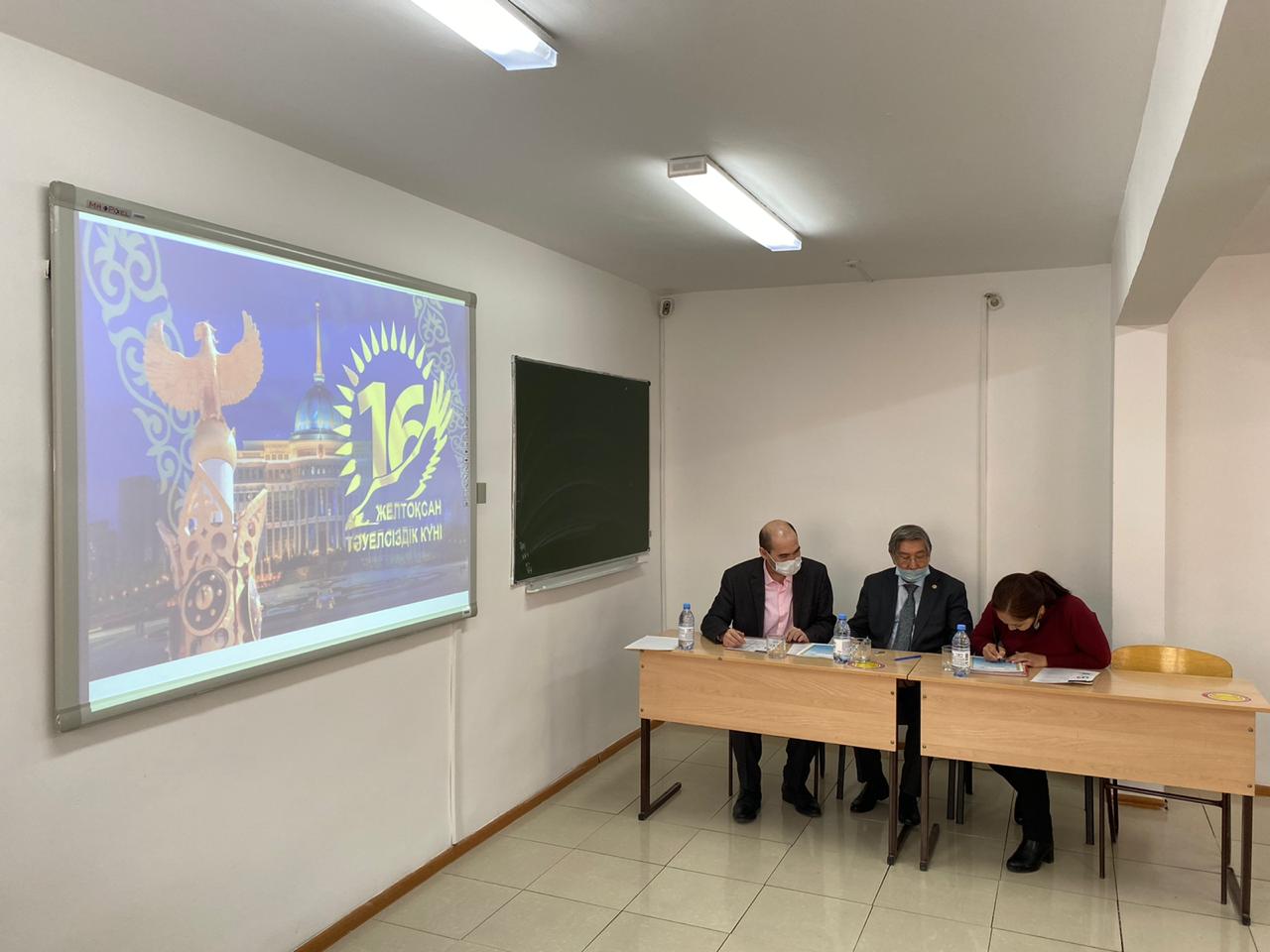 Жюри, оценивающее игру и подсчитывающее количество баллов, возглавляли заведующий кафедрой, к.ю.н., профессор К.З. Идрисов, к.ю.н., доцент Ж.Н. Альмуханбетов, м.ю.н., старший преподаватель А.О. Ибраева.
