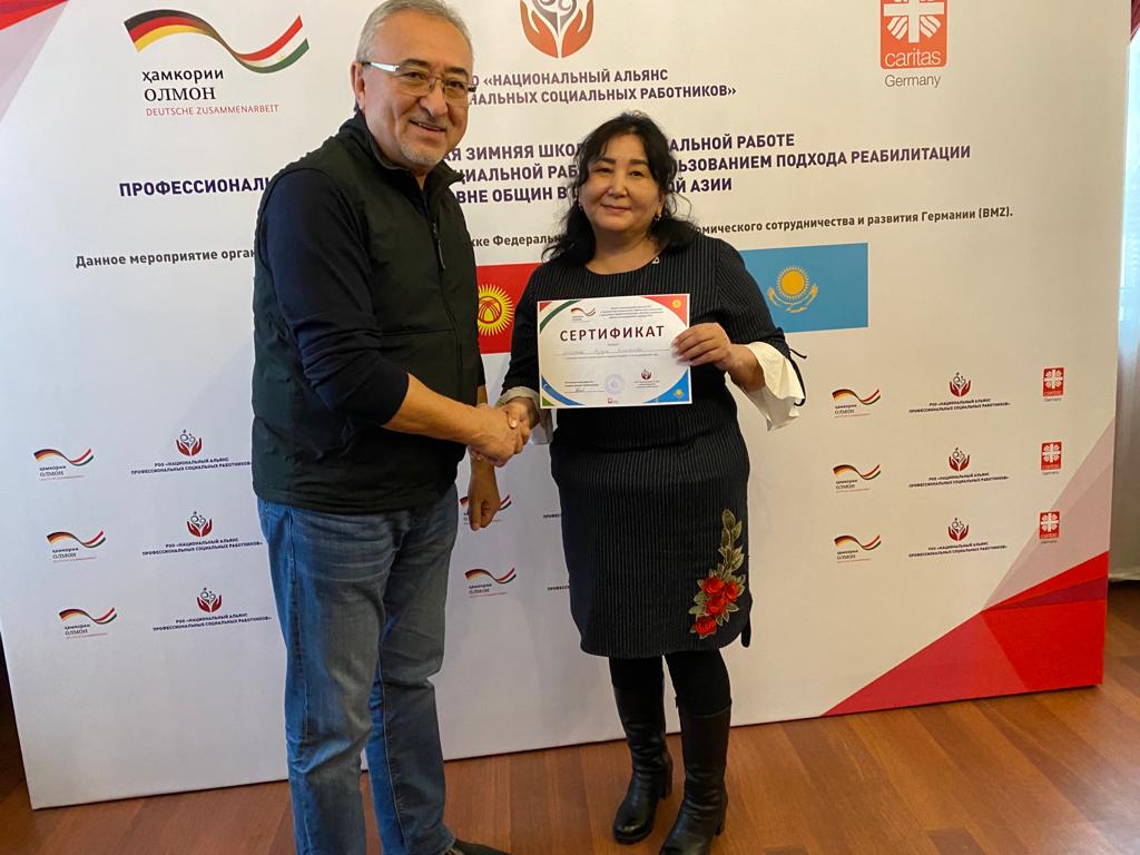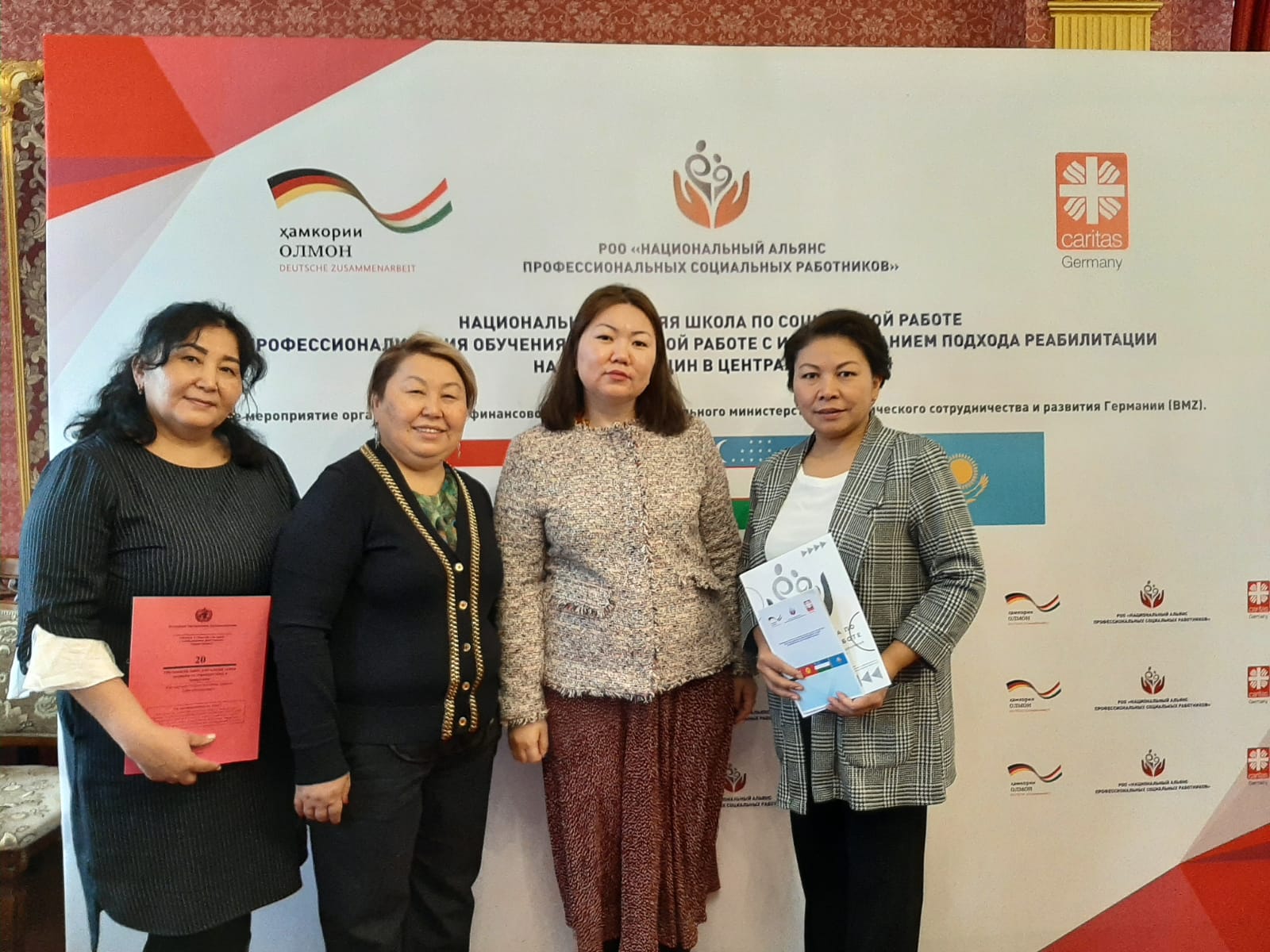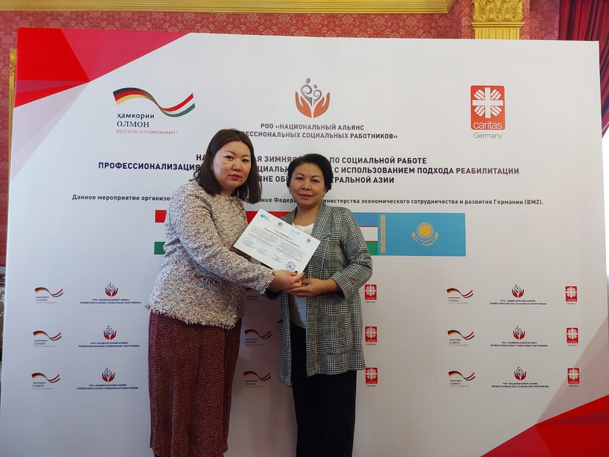21-23 декабря 2021 года старшие преподаватели кафедры педагогики Турманова Ж. Е., Болатбекова Н. Ж. приняли участие в курсах повышения квалификации «Зимняя школа», организованных РОО«Национальный альянс профессиональных социальных работников Казахстана» при поддержке «Caritas Germany» в Таджикистане. Целью зимней школы была консолидация реабилитационных структур на уровне общин в Казахстане, Кыргызстане, Узбекистане и Таджикистане», ППС вузов и колледжей. Во время мероприятия участники обменялись мнениями о профессионализации обучения социальной работе с гуманитарной наукой, в том числе с прикладной психологией.