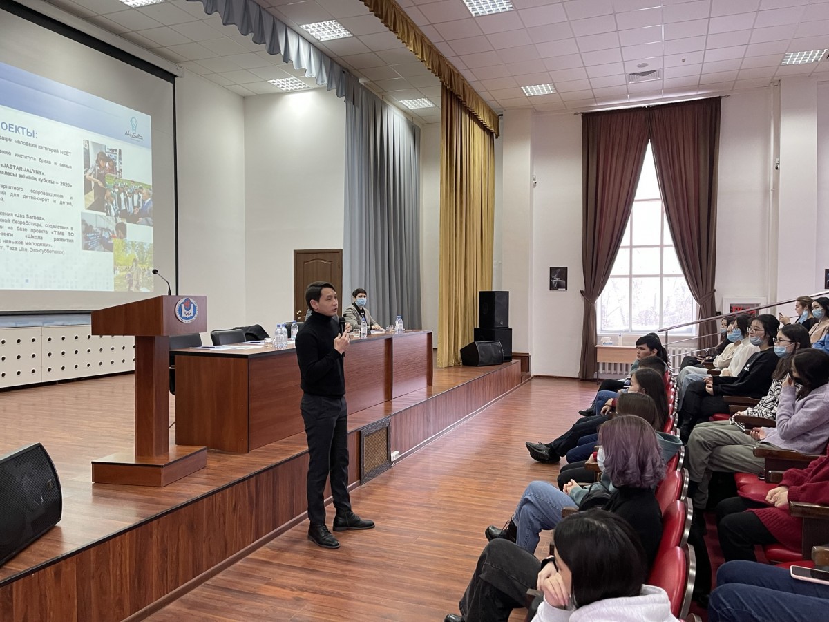 В ходе мероприятия были обсуждены вопросы развития у студентов навыков предпринимательского мышления, активной жизненной позиции, ответственности за свой выбор. Спикер Сулейменов О. сделал акцент в своем докладе на новое поколение казахстанцев. Своим примером он показал, насколько важно быть динамичным, любознательным, инициативным и креативным человеком, дал полезные советы всем молодым людям для достижения успеха в дальнейшей жизни.