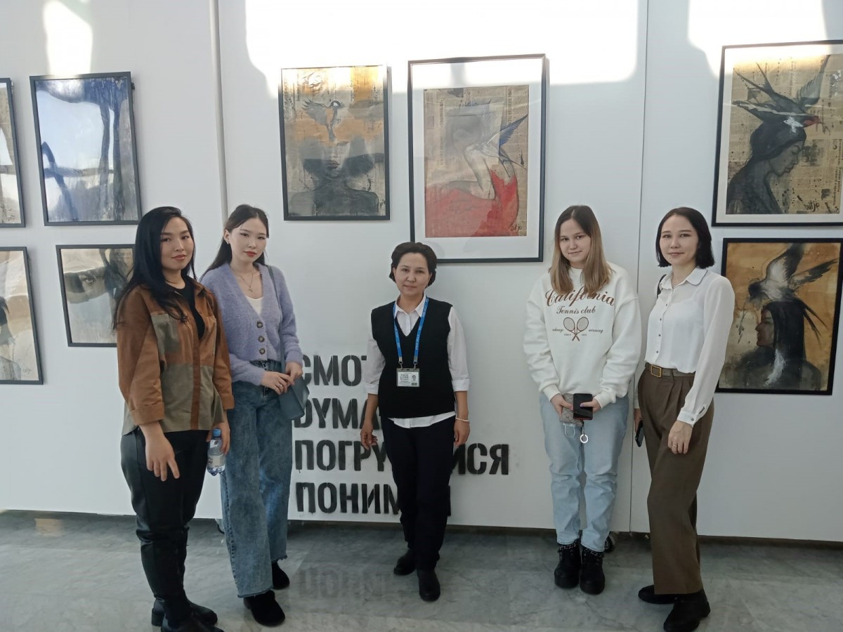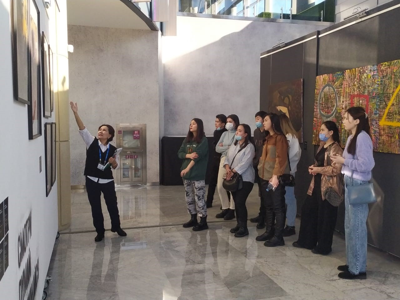 19 февраля 2022 года куратор, старший преподаватель кафедры иностранных языков Хасилан Фариза со студентами 2 курса образовательной программы «Переводческое дело» (академическая группа АI-20-01) посетили выставку «Мета-Вселенная». Перед собравшимися выступила с презентацией на английском языке Гульжан Есенбаева, гид агентства Арман-Тур.