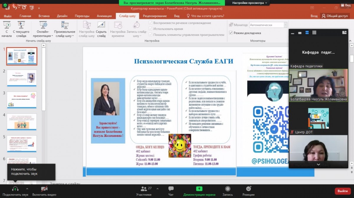 11 марта 2022 года Психологическая служба Евразийского гуманитарного института организовала онлайн-семинар на тему: «Социально-психологическая адаптация студентов».