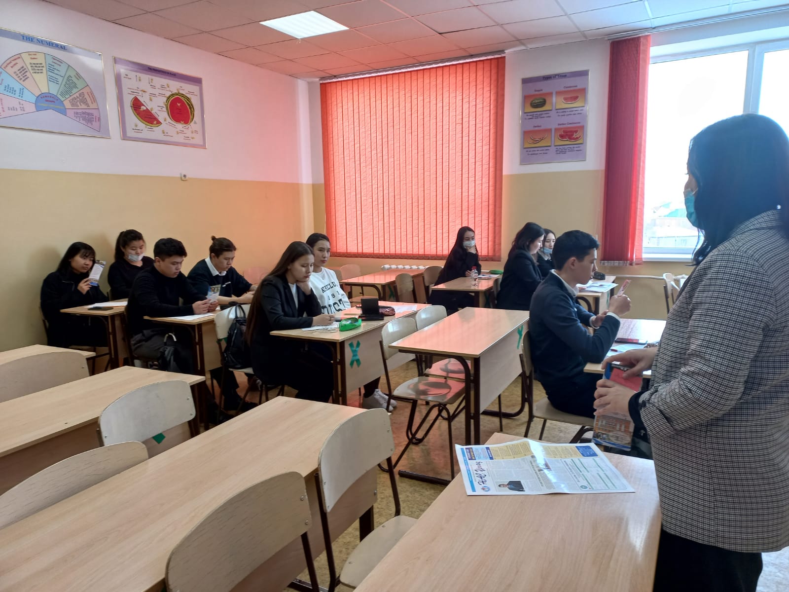 14 марта 2022 года старший преподаватель кафедры юридических дисциплин Тортаева А.Э. провела встречу с учащимися 11  класса и классными руководителями школы №52 г. Нур-Султан с целью профориентации.