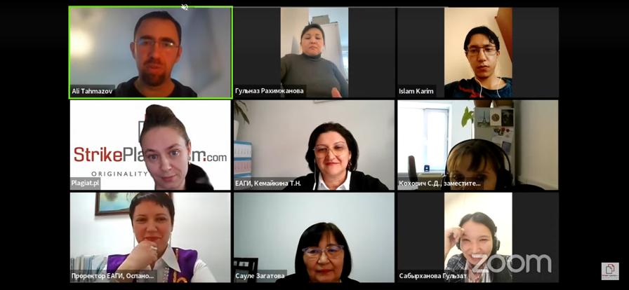 18 марта 2022 года в Евразийском гуманитарном институте на базе платформы ZOOM для преподавателей и студентов прошел вебинар – тренинг на тему: «Методология оценки и проверка студенческих, научных работ на предмет плагиата». Представителями компании Plagiat.pl были рассмотрены вопросы, такие как: функционал заданий, работа с автоматизированным отчетом, переводные заимствования, кодовая панель и самостоятельная проверка. Внедрение системы «Антиплагиат» побуждает обучающихся к самостоятельной работе, развивает навыки написания текстов, помогает научиться эффективно работать с источниками, делает необходимым проявление их творческого начала.
