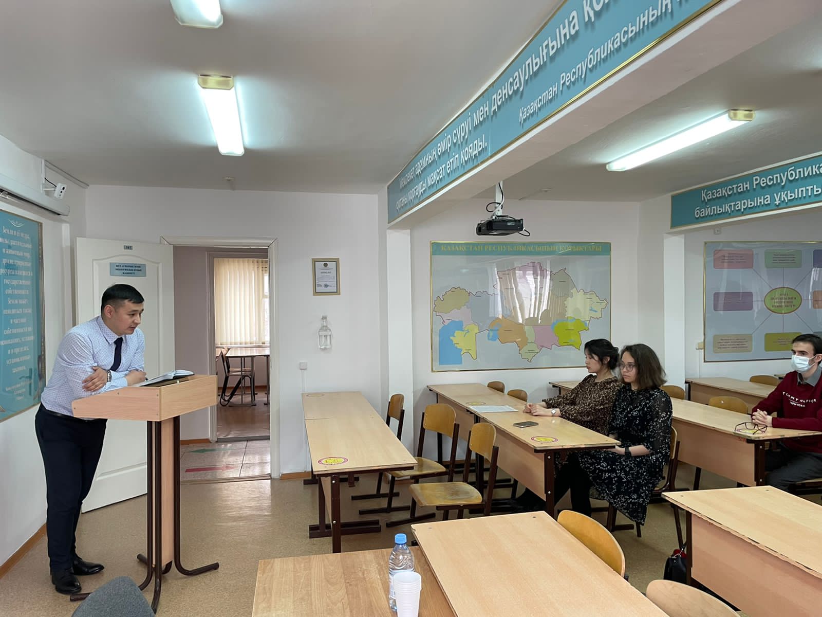 С 24 марта по 1 апреля 2022 года в целях исполнения положений Меморандума о сотрудничестве начальником отдела по расследованию преступлений против общественного порядка следственного управления Департамента полиции г. Нур-Султан, майором полиции Жумахметовым Р.К. для студентов  образовательной программы «Юриспруденция» были проведены гостевые лекции на следующие темы: