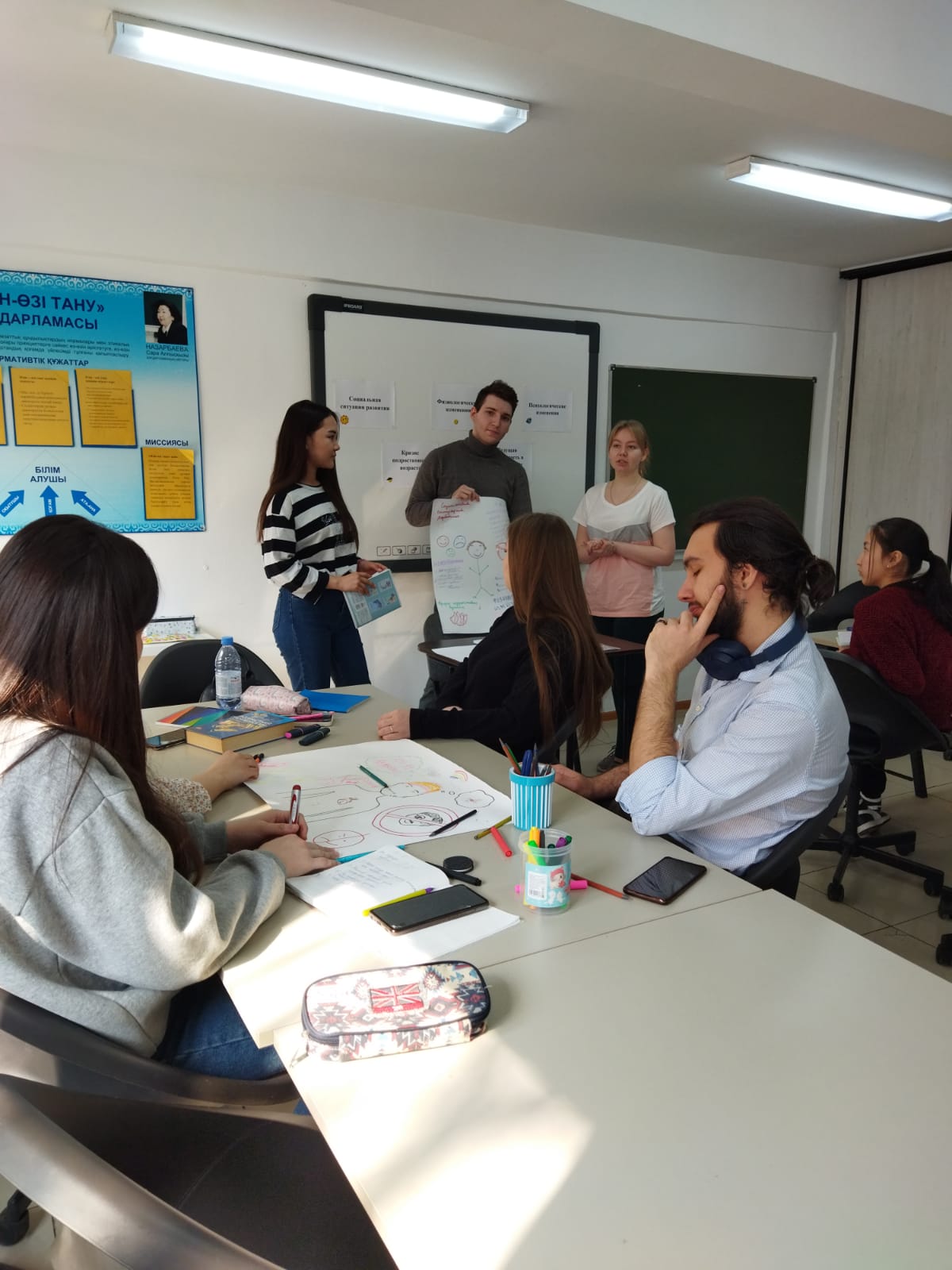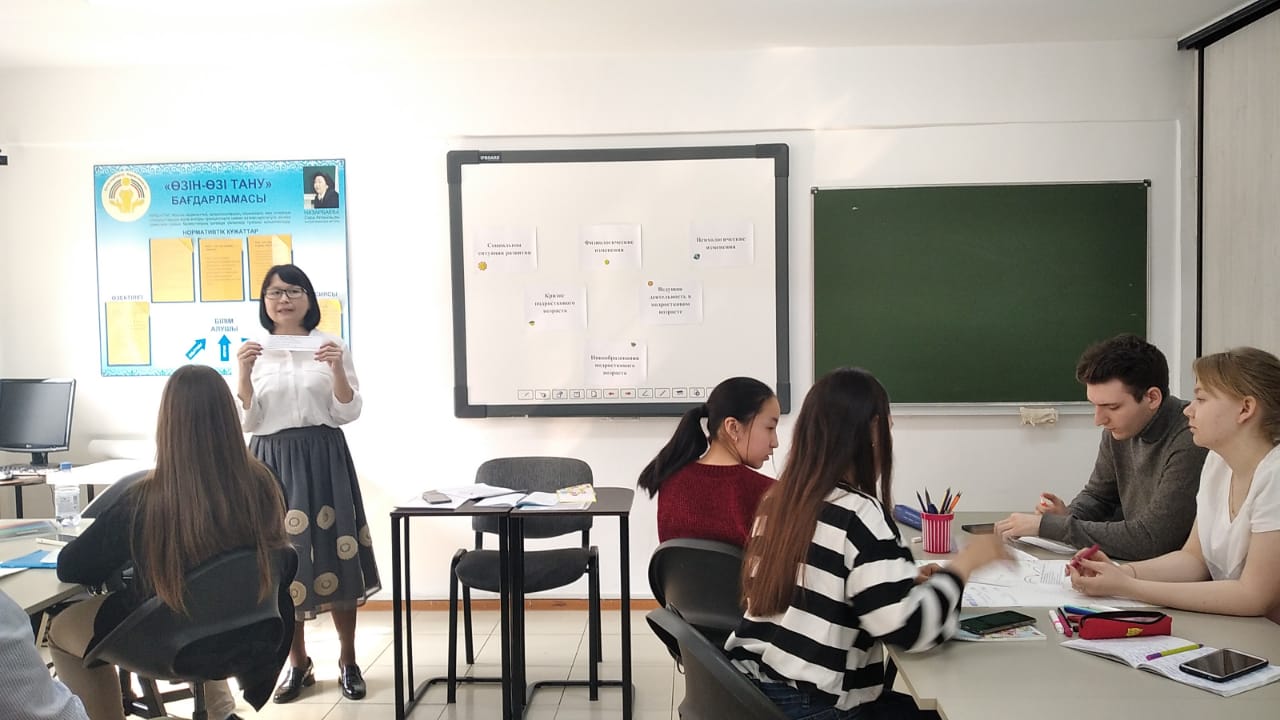 19 апреля 2022 года доцент кафедры педагогики Кударова Назгуль Абильбековна провела открытое занятие для студентов образовательной программы 6В01102 – Педагогика и психология ( академические группы ПП-21-01, ПП-20-01) по дисциплине «Возрастная психология» на тему: «Психолого-педагогические особенности подросткового возраста».