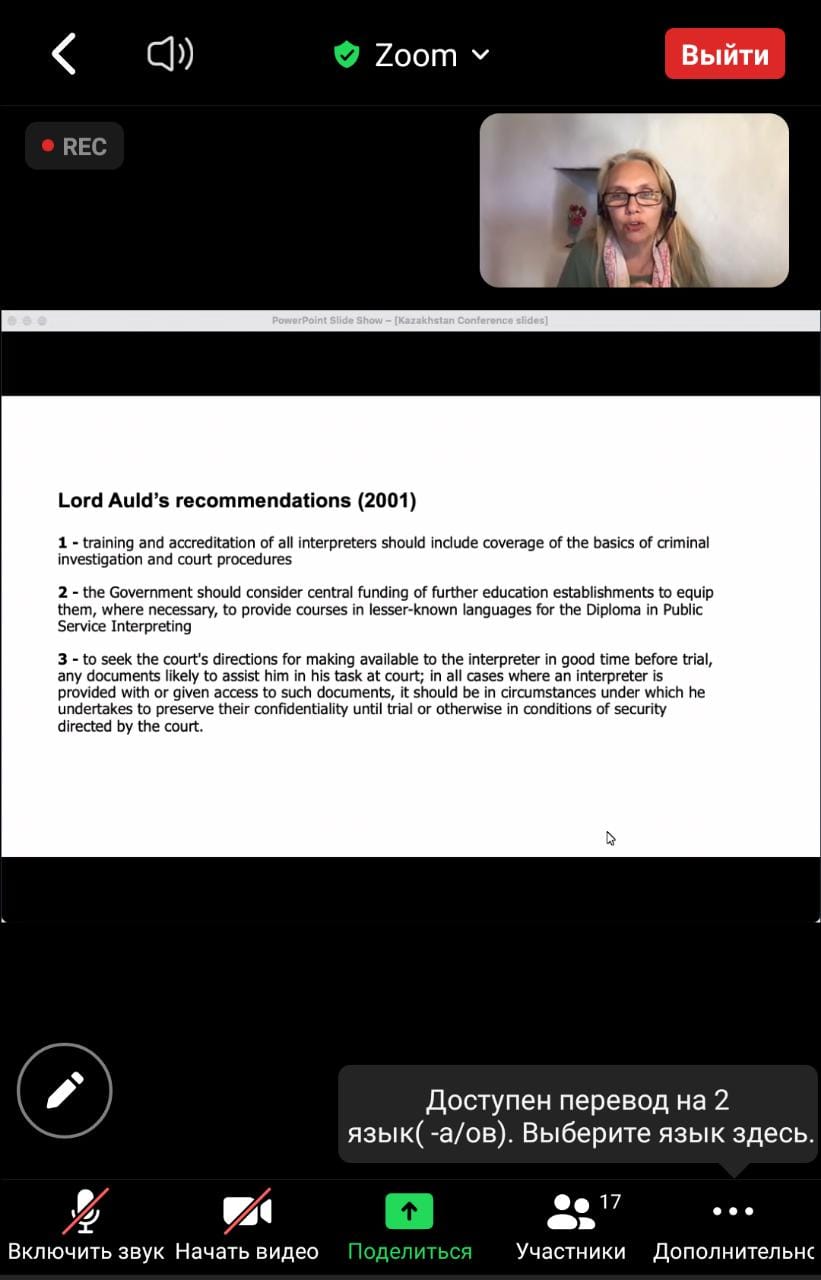 Целью мероприятия было обсуждение международного опыта и перспектив легализации и упорядочения деятельности переводчиков, участвующих в работе судебных и правоохранительных органов в Республике Казахстан.