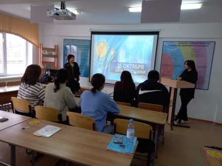 17 октября 2022 года Альмухамбетов Ж.Н., к.ю.н., доцент кафедры юридических дисциплин, куратор академической группы ЮР-22-01 провел кураторский час, посвященный празднованию Дня Республики. Альмухамбетов Ж.Н. рассказал студентам об истории и значении праздника, остановившись на Декларации о государственном суверенитете Казахской Советской Социалистической Республики, принятой 25 октября 1990 года, которая провозгласила суверенитет Казахской ССР и декларировала политико-правовые основы Казахстана как независимого государства.