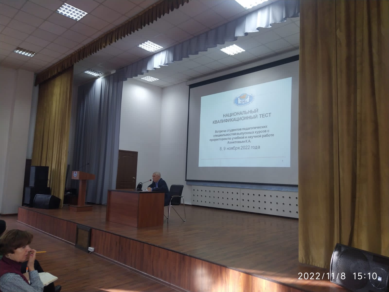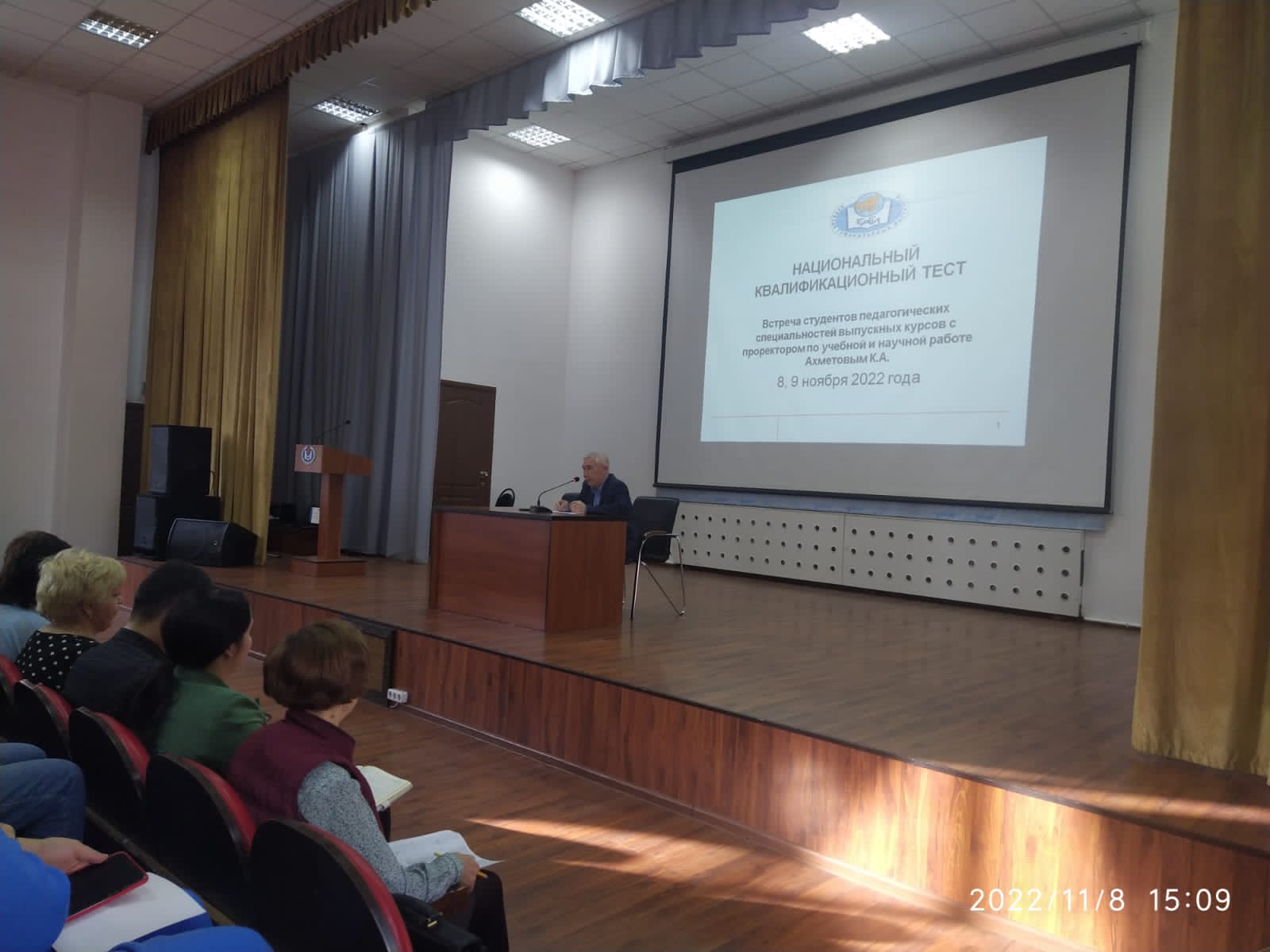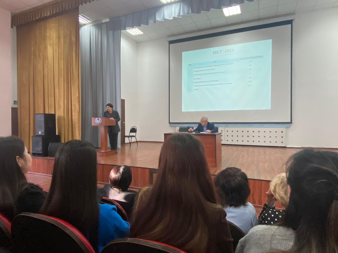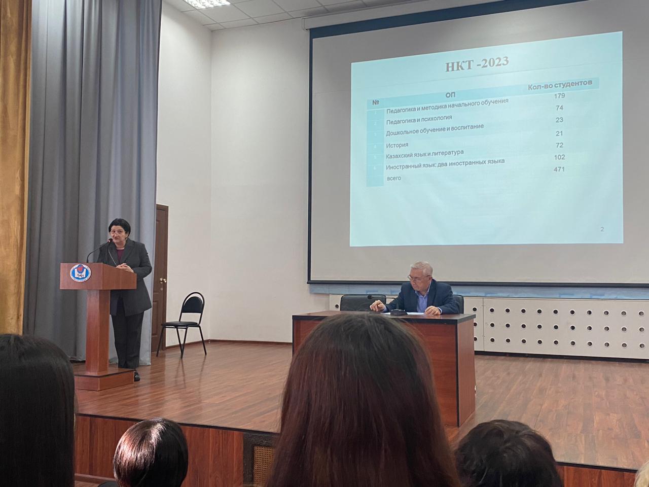 8 и 9 ноября в стенах Евразийского гуманитарного института со студентами выпускных курсов педагогических специальностей состоялись встречи с проректором по учебной и научной работе Ахметовым Кадыром Абильжановичем. Цель встреч: ознакомить студентов с процедурой прохождения Национального квалификационного тестирования. В ходе встреч была представлена общая информация об НКТ, формате и структуре теста, критериях оценивания и пороговых результатах. На встречах декан ЕАГИ, Кемайкина Татьяна Нигматовна, представила преподавательский состав, ответственный за консультацию студентов на период подготовки. Студенты получили исчерпывающие ответы на все вопросы, касающиеся НКТ. Желаем всем выпускникам успешной сдачи НКТ!