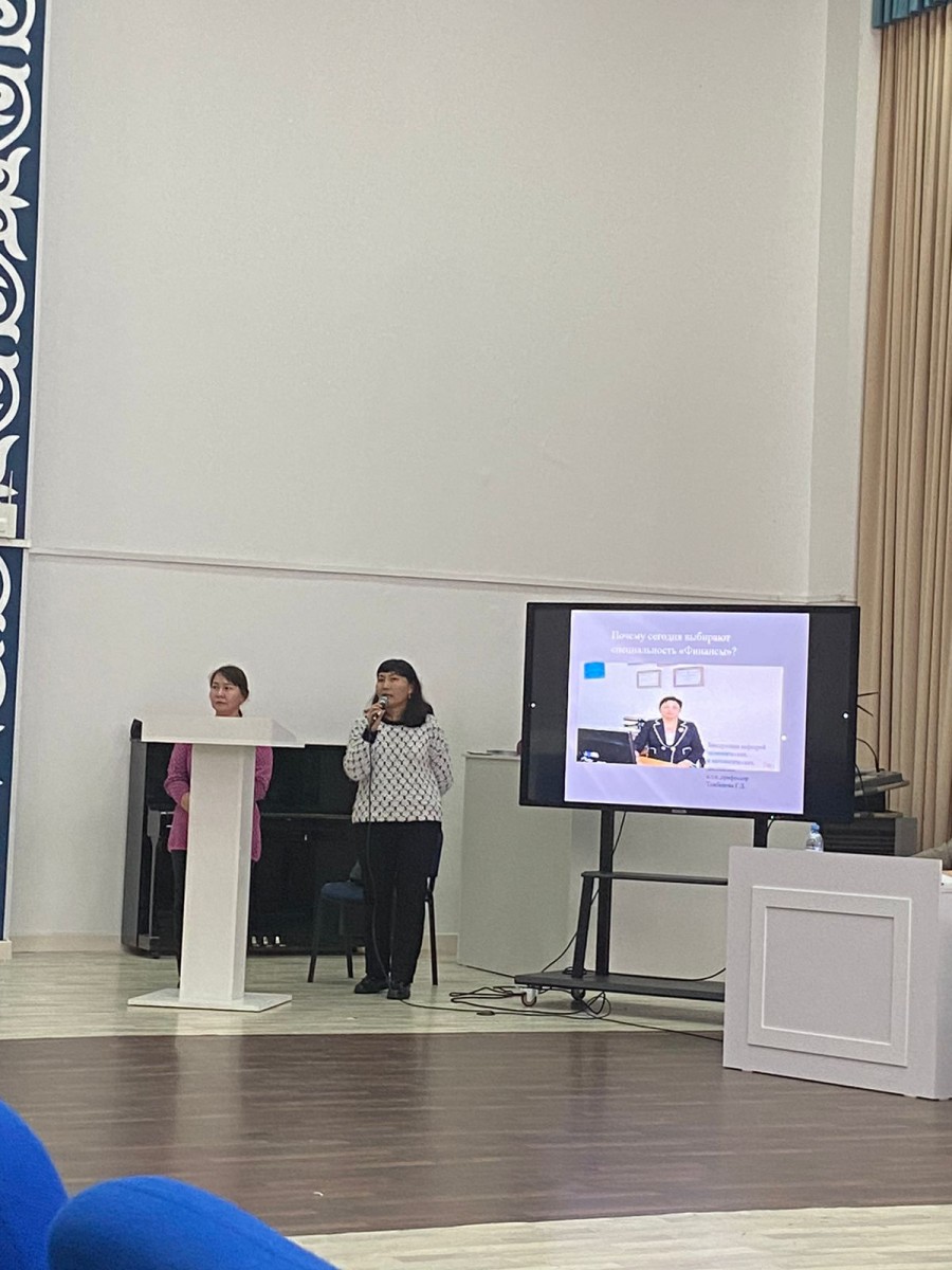 В «Ярмарке специальностей», прошедшего 17 ноября 2022 года в школе-гимназии №51 им. Мустафы Шокая, приняли участие старший преподаватель кафедры экономических и математических дисциплин, магистр экономических наук Кожахметова А.Н., магистр экономических наук Даулетханова Ж.Д. и студенты 4 курса. Они ознакомили учащихся 11 классов с информацией, касающейся профориентации, ответили на интересующие вопросы учащихся.