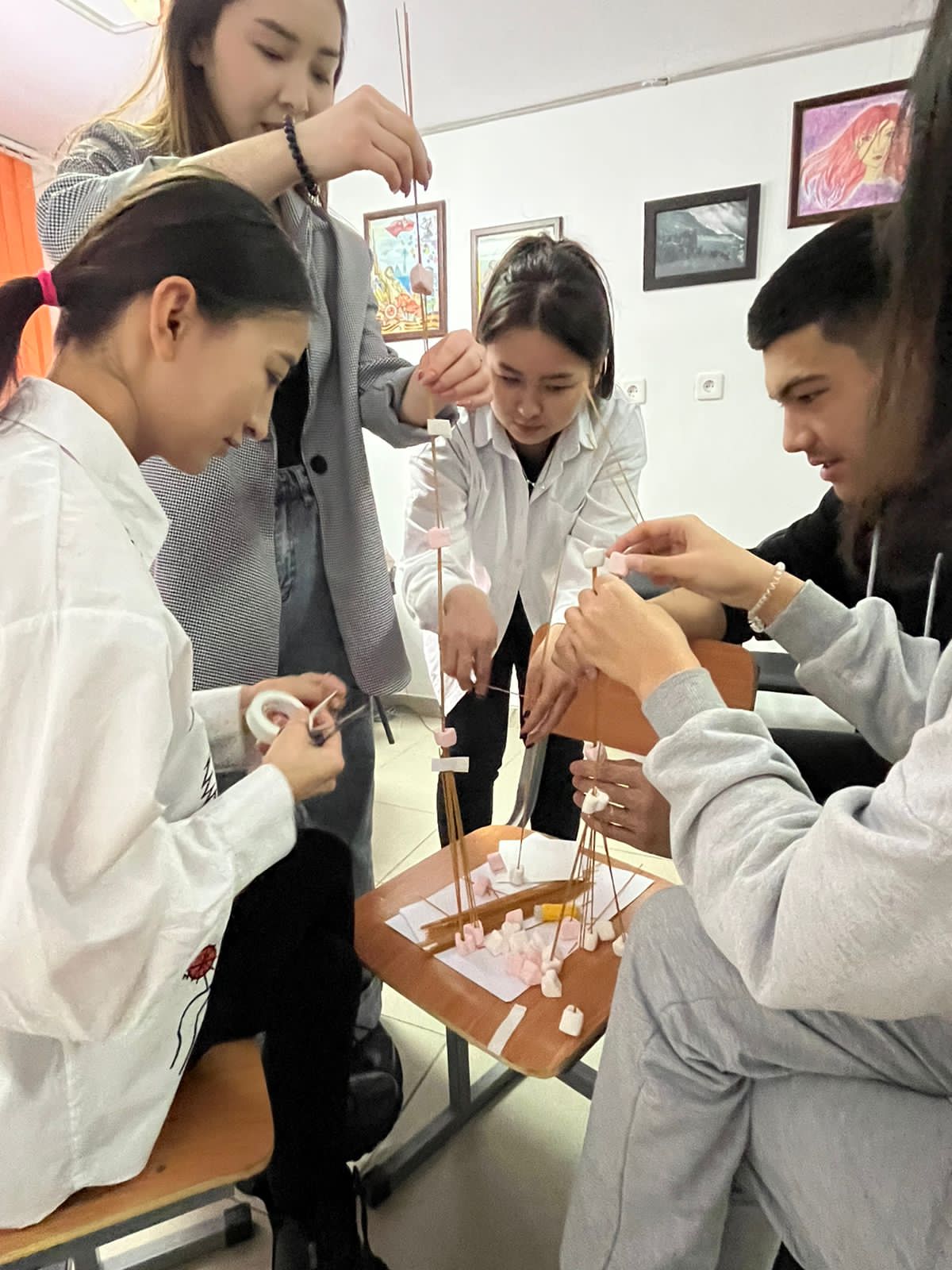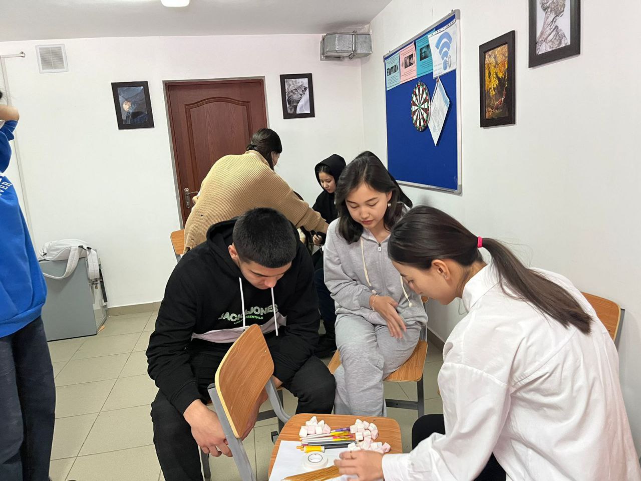 20 ноября 2022 г. руководителем психологической службы ЕАГИ Қабыл А.Н. и студентами – волонтерами клуба «Асыл жүрек» Тұрсынхан Ұ., Қанатқызы М. и Аппозбек А. (академическая группа ППК-19-01) был проведен тренинг для студентов, проживающих в Доме студентов, на тему: «Строим башню». Цель тренинга: сформировать коммуникативные, лидерские навыки и развить чувство товарищества среди участников тренинга. Студенты приняли активное участие в тренинге и поделились положительными эмоциями после его проведения.