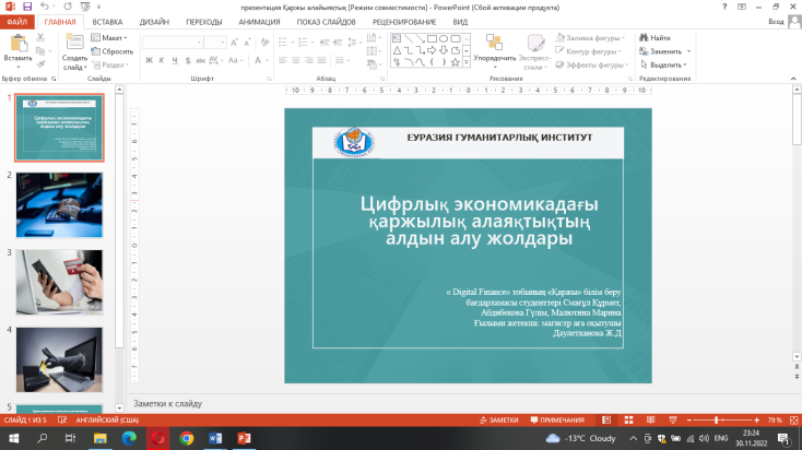 30 ноября 2022 года студенты образовательной программы  «Финансы» приняли участие  в международной онлайн – олимпиаде «Финансы современности 360 0 », посвященной Дню национальной валюты в рамках 30-летия университета «Туран» (г. Алматы).