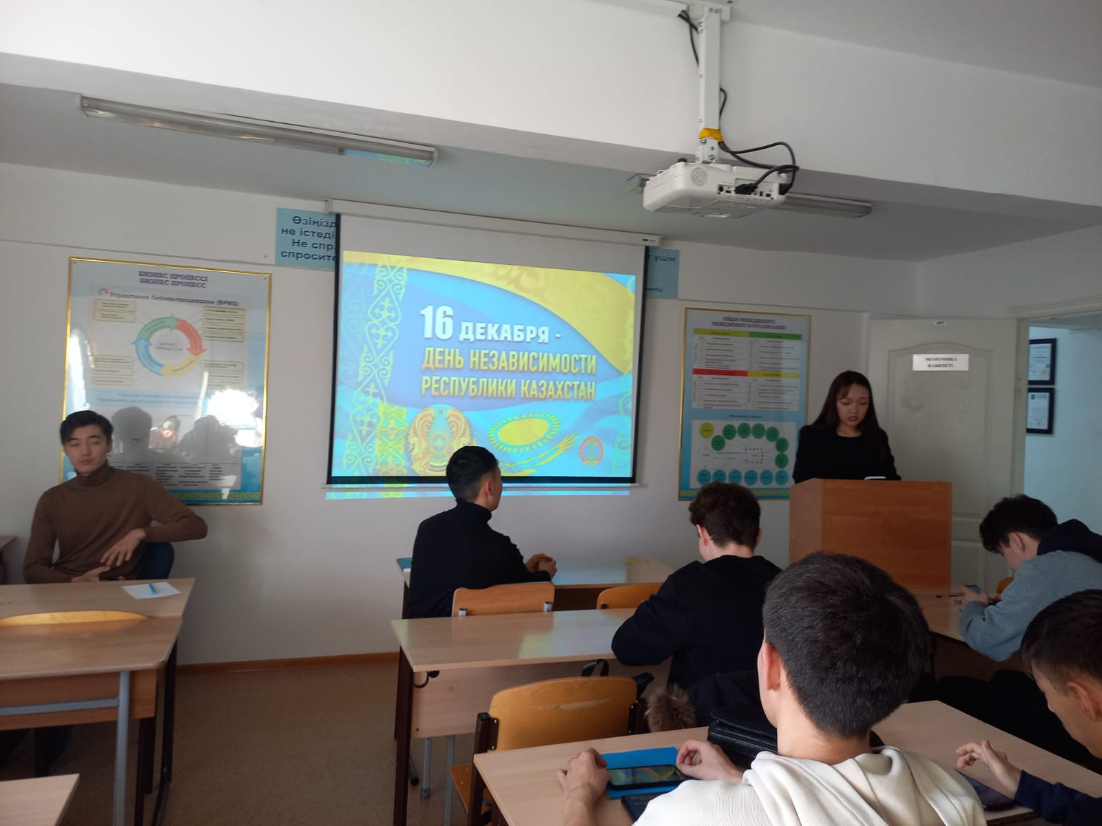 14 декабря 2022 года куратор Мажитова Б.Б. провела кураторский час «День Независимости Республики Казахстан» для студентов образовательной программы «Финансы» (в академических группах Ф-19-01, Ф-22-01, ФТ-22-01). Цель кураторского часа: воспитание чувства патриотизма, любви к Родине, гордости за историческое прошлое, настоящее и светлое будущее народа Казахстана. С докладом о Дне Независимости выступила студентка Бербибаева М. Кураторский час завершился викториной, в ходе которой студенты ответили на вопросы по темам: «Насколько хорошо вы знаете Родину?» и «Конституция РК».